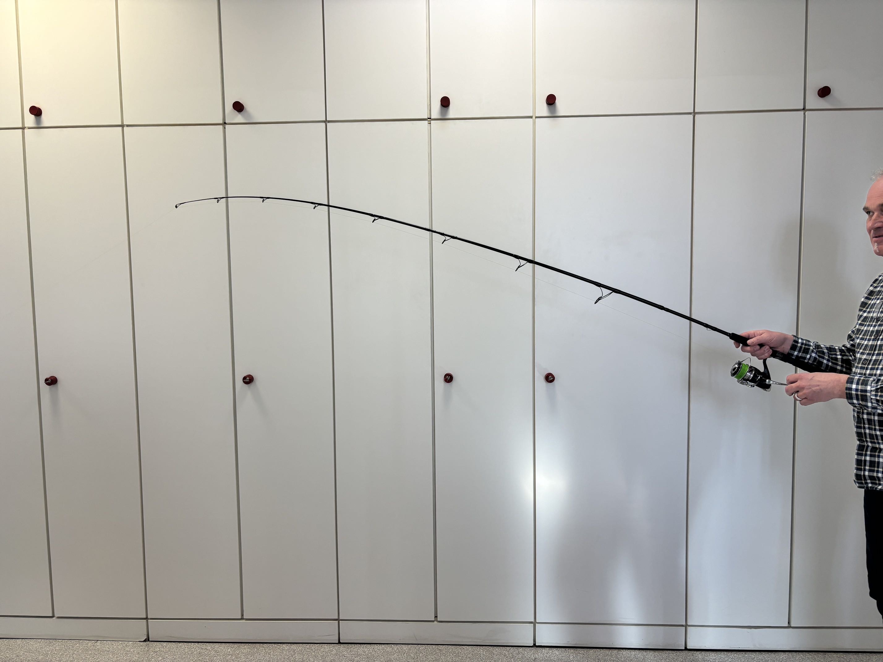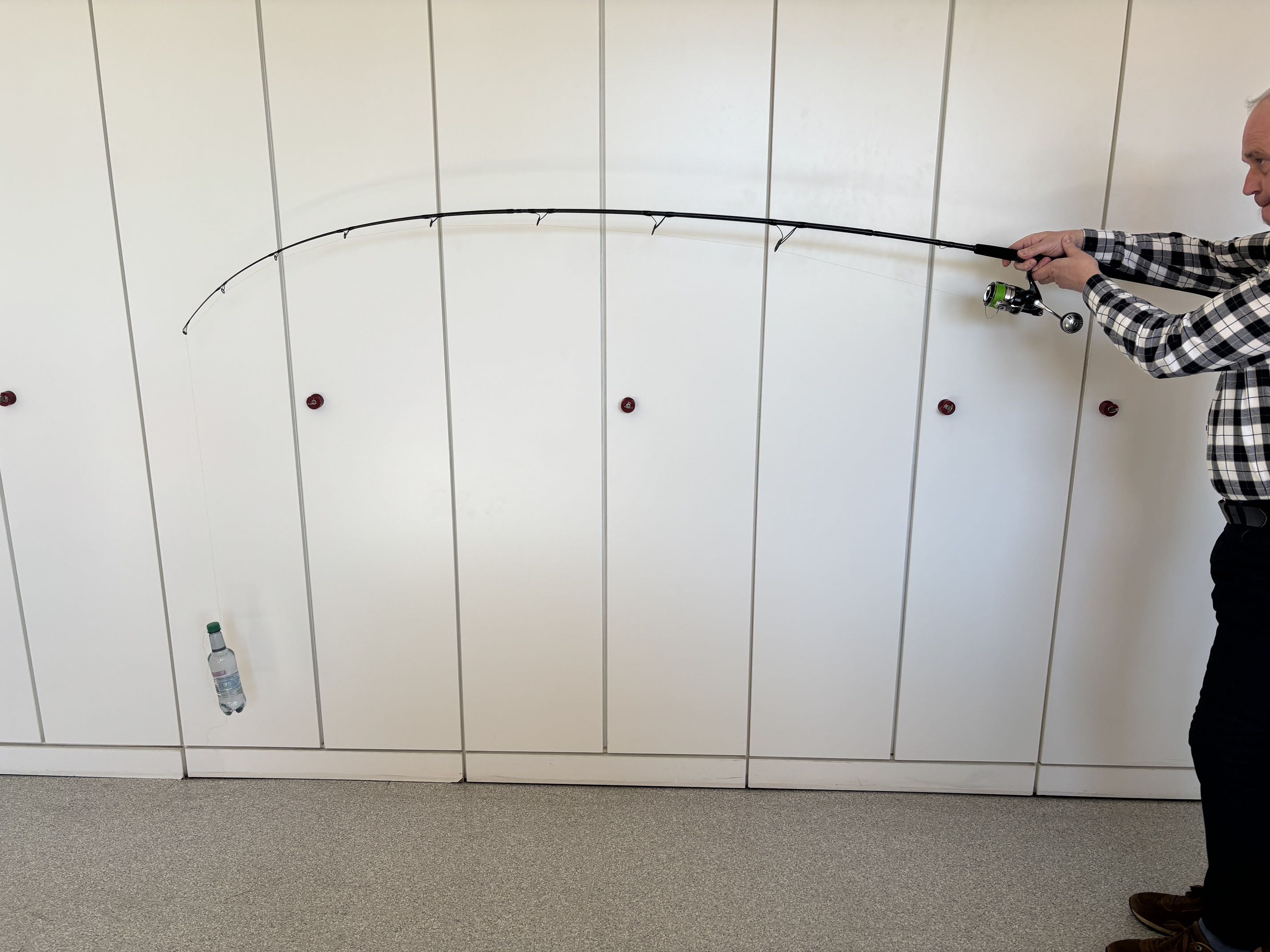 Und ich habe so einen unförmigen Koffer 80x40x35. Da passt die Rute diagonal in eine Halbschale des Koffers. Ich habe aber keine Ruten, mit so einer Teilung.