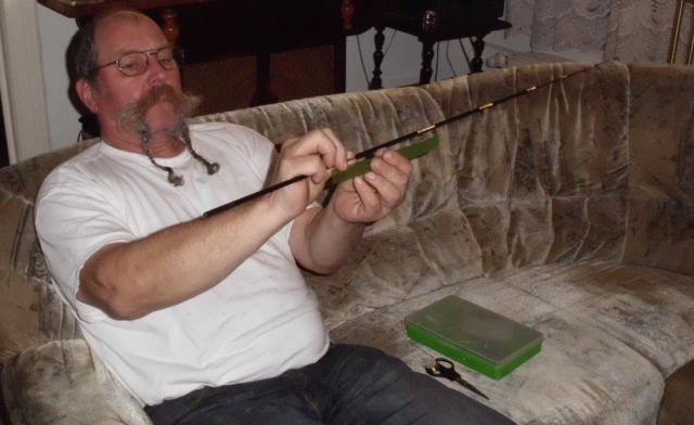 Ich baue jetzt die 7. Hardy Marksman Matchrute in 14 ft. um(Neuberingung).Der Besitzer kam auf mich zu nachdem er eine meiner Umbauten gesehen hatte und schwärmte von den Bindungen und der Lackierung(seiner Ansicht nach :da könnt sich Hardy ein Stück abschneiden),und ich bin mir sicher icih hätte mich über diese Anerkennung nicht so freuen können,wenn ich sie nicht wirklich von Hand gebunden hätte.
