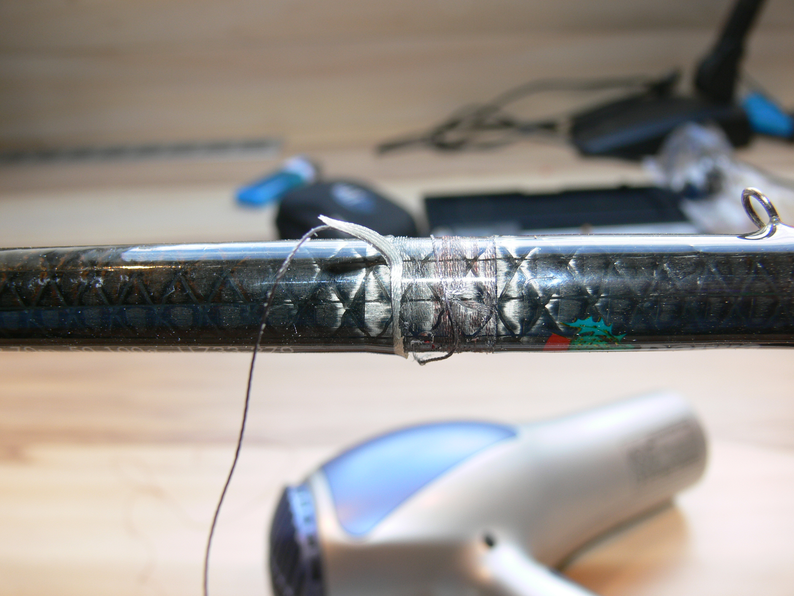 Eine Endkappe mit Eintracht - Adler, ein 7er Ringsatz MNST 30-8 und ein paar schwarzweiße Wicklungen später ist die Rute fast fertig.