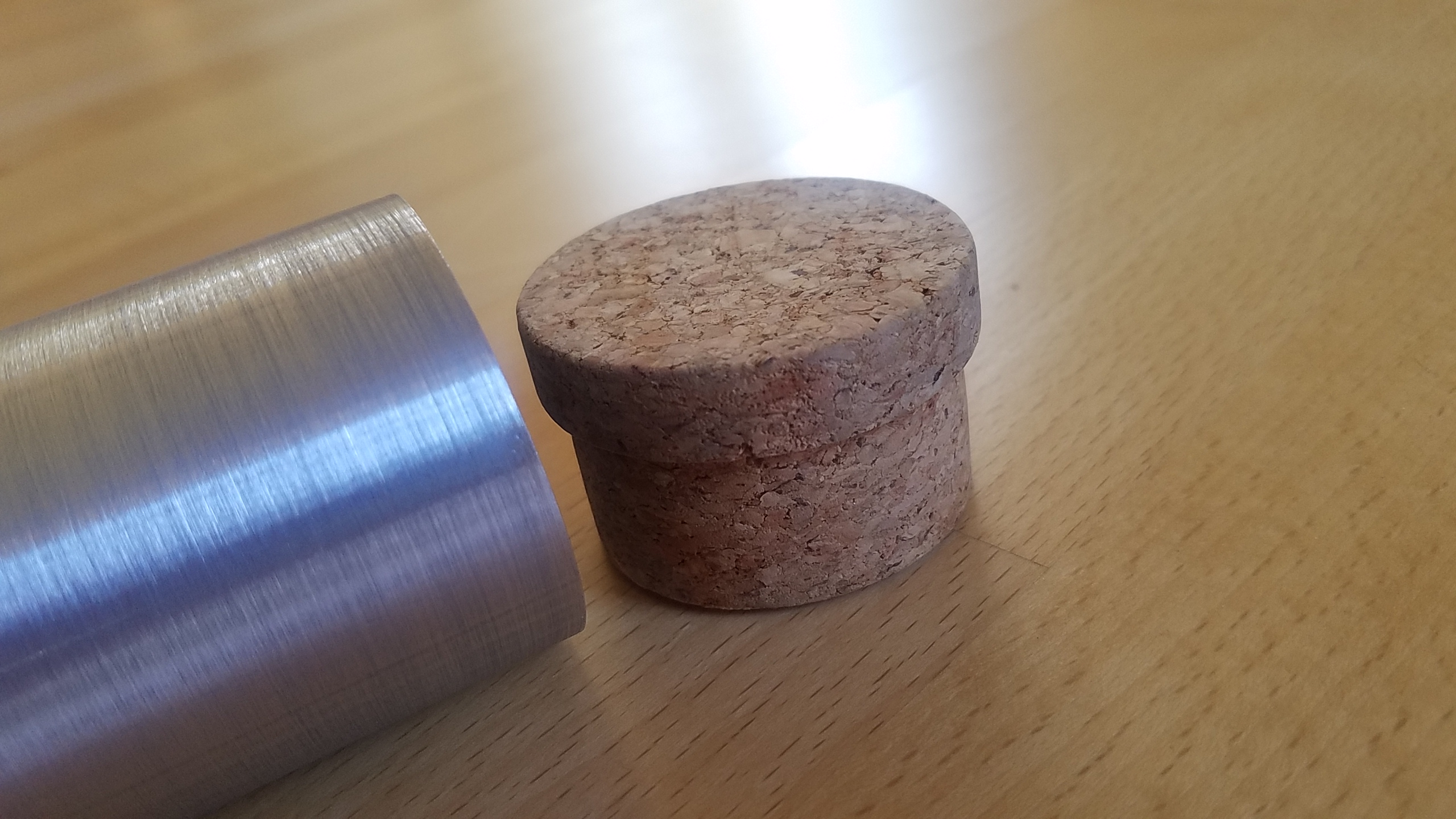Nachdem ich keinen vernünftigen Schraubverschluss im Handel gefunden habe, bin ich auf eine Einsteckkappe umgestiegen. Diese habe ich aus Akazienholz selbst angefertigt. Das fest geschlossene Ende im gleichen Design. Ich finde das Ergebnis noch schicker als die klassischen Schraubverschlüsse von sage und co.