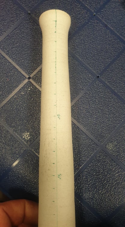 Dann markiere ich mir 1cm Abstände auf dem Griff und messe den Durchmesser.