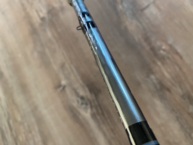 Ab dem Winding Check hoch richtung Rutenspitze lackiere ich so 15cm komplett. Übermale die Beschriftung und ein paar Zierwicklungen.