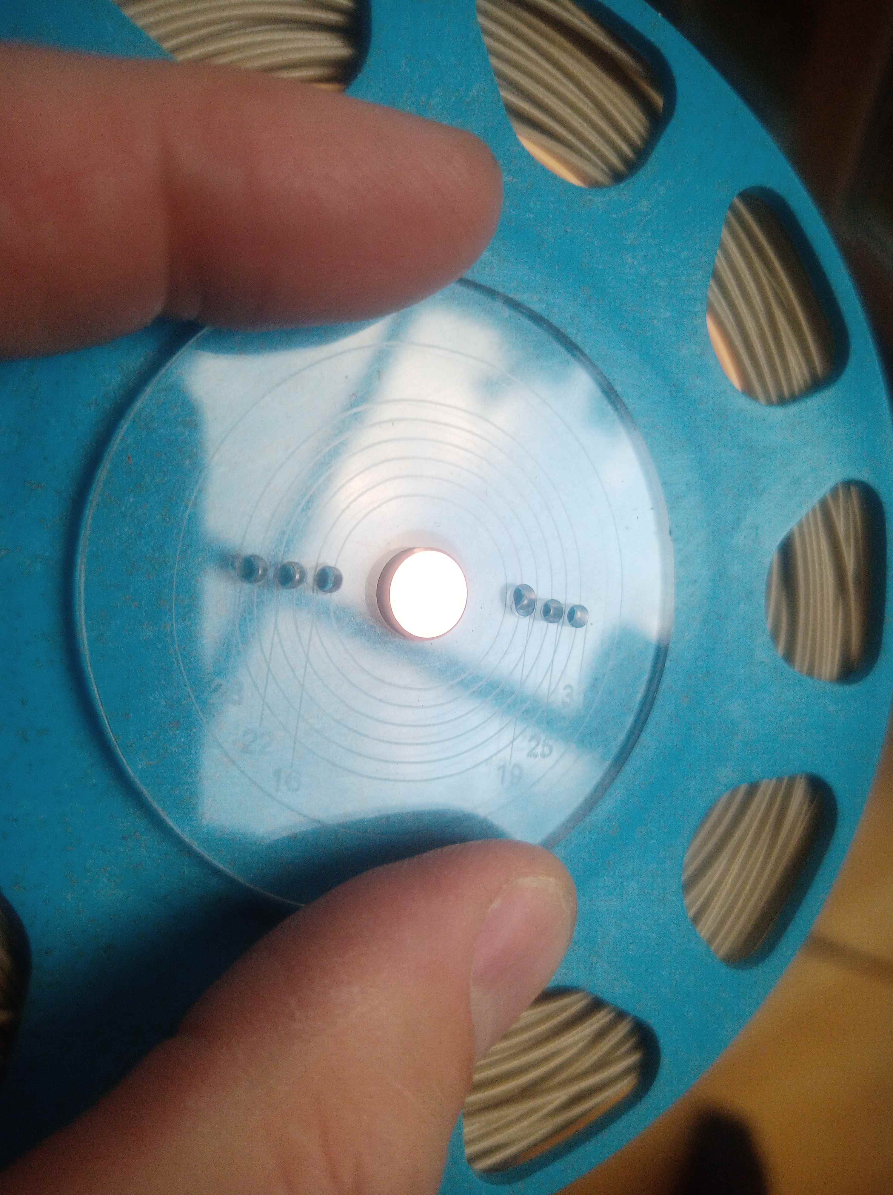 Richtig gute Idee, und schön umgesetzt Zweidaumenhoch Das werde ich zu gegebener Zeit mal hemmungslos raubkopieren, zwar nicht in der Qualität, aber funktionell könnts schon werden Applaus Mit einer zweiten Scheibe mit Loch statt Zapfen in der Mitte könnte man vielleicht auch Vollscheiben außermittig bohren, um auch da noch mäßige Qualität bestmöglich zu verbauen.