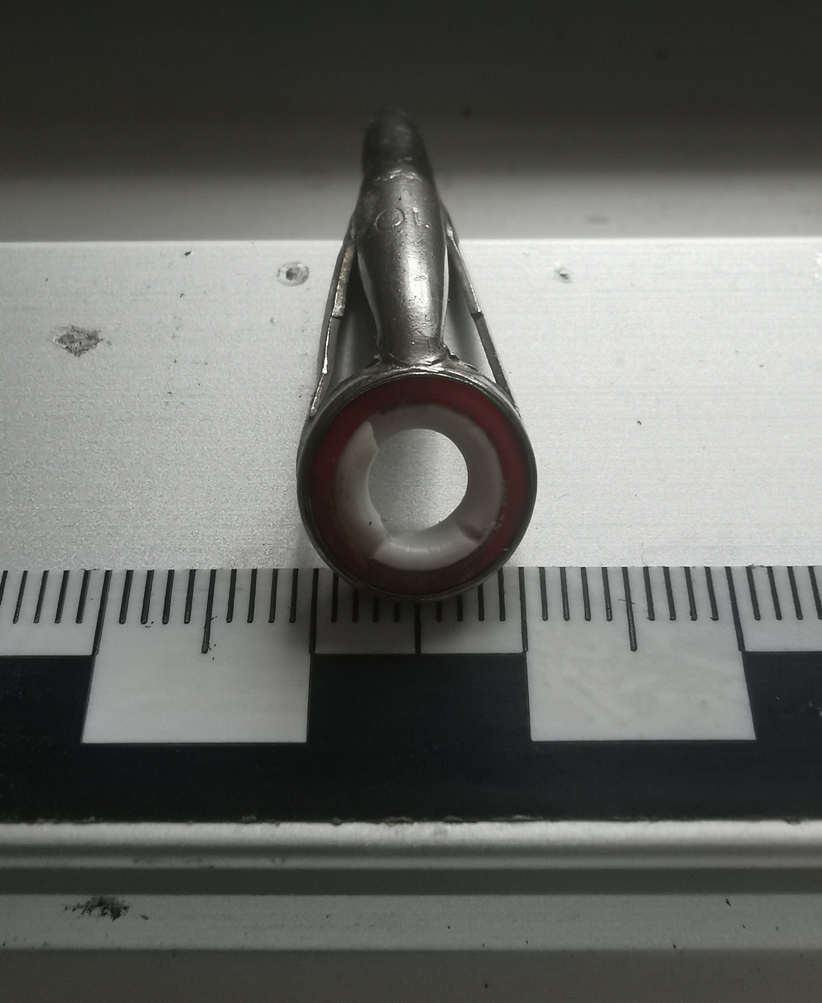 Diese Einlagen, vor allem natürlich beim Spitzenring, bekommen recht schnell Rillen durch die Schnur, auch mit Monofiler. Ich hatte solche Ringe früher auf einigen Stangenruten und habe sie bald austauschen müssen.