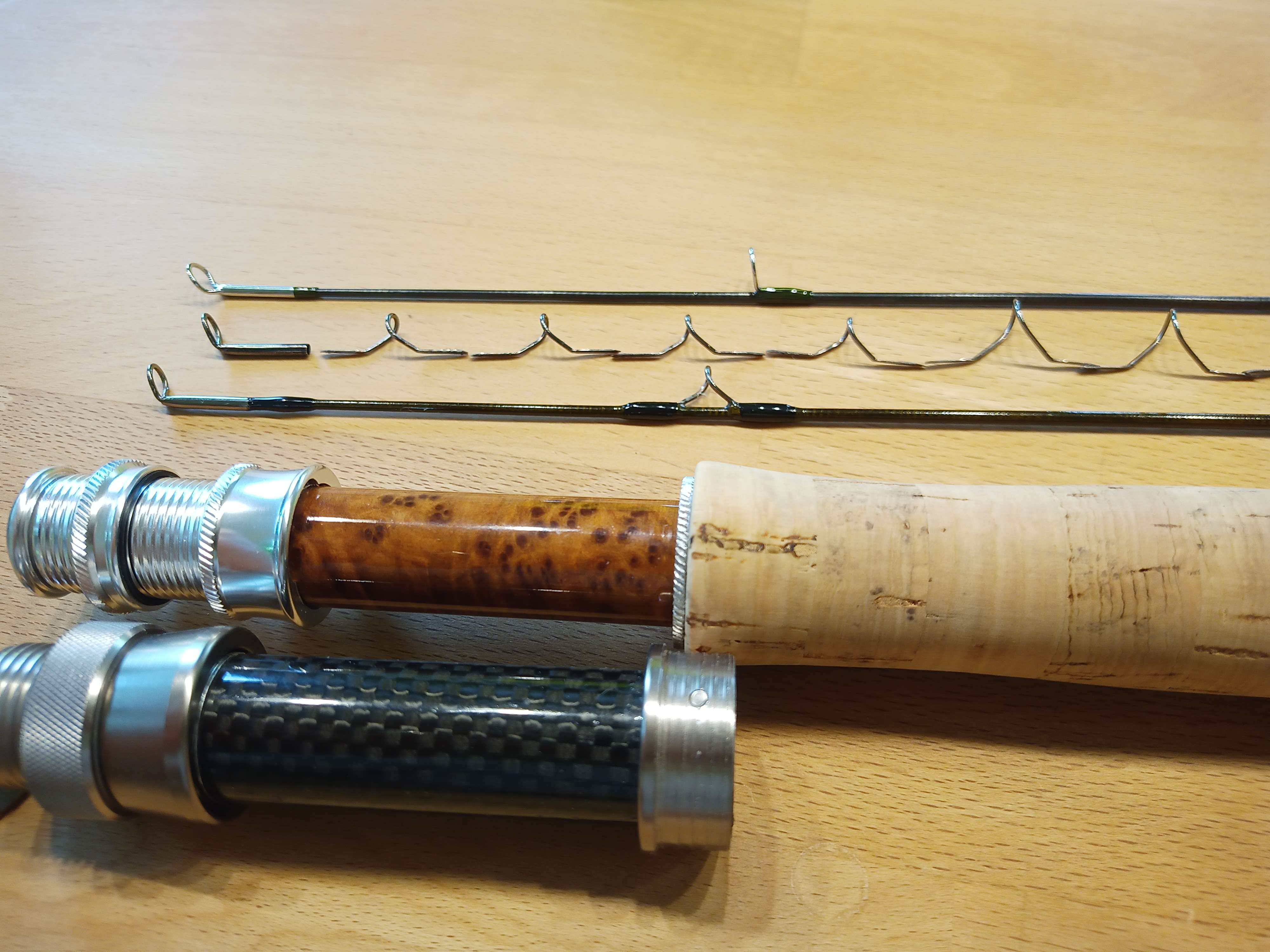 Keine Ahnung, ob es die Serie ist, mit der H.R. Hebeisen seinen bekannten 20m Wiesenwurf gemacht hat, kann es mir aber sehr gut vorstellen. Werde ich mal mit einer DT ausprobieren (allerdings kommen mir von den Werten her 20m einer #5 DT etwas viel vor) und wenn es mir gelingt mich richtig gut fühlen. Und wenn nicht, dann liegt es natürlich an den ca. 6cm Längenverlust durch die tiefer fassenden entlackten Überschübe. Ich habe die Teile auch je um ca. 1,5 cm gekürzt damit die Überschübe nicht so weit übergreifen. Sie war vorher auch nur etwas über 2,10m und nicht 2,15m wie angegeben.
