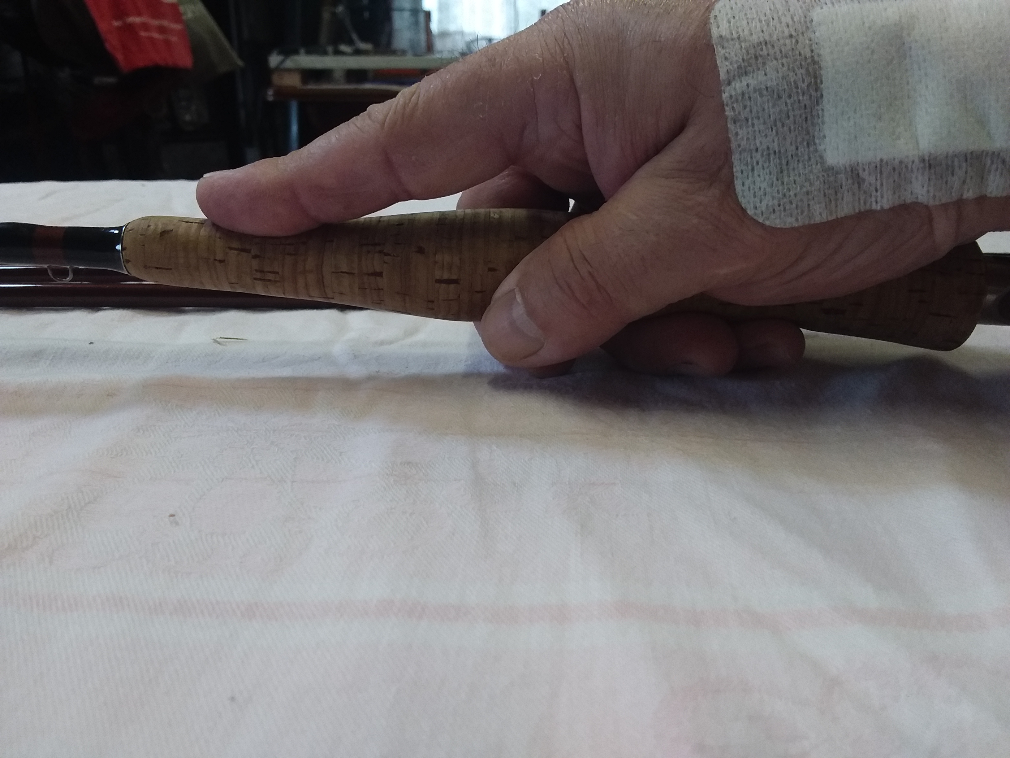 Mir ermöglicht erst dieser Griff das Fischen mit der Einhand-Fliegenrute, da ich dünne Griffe nicht lange greifen kann.