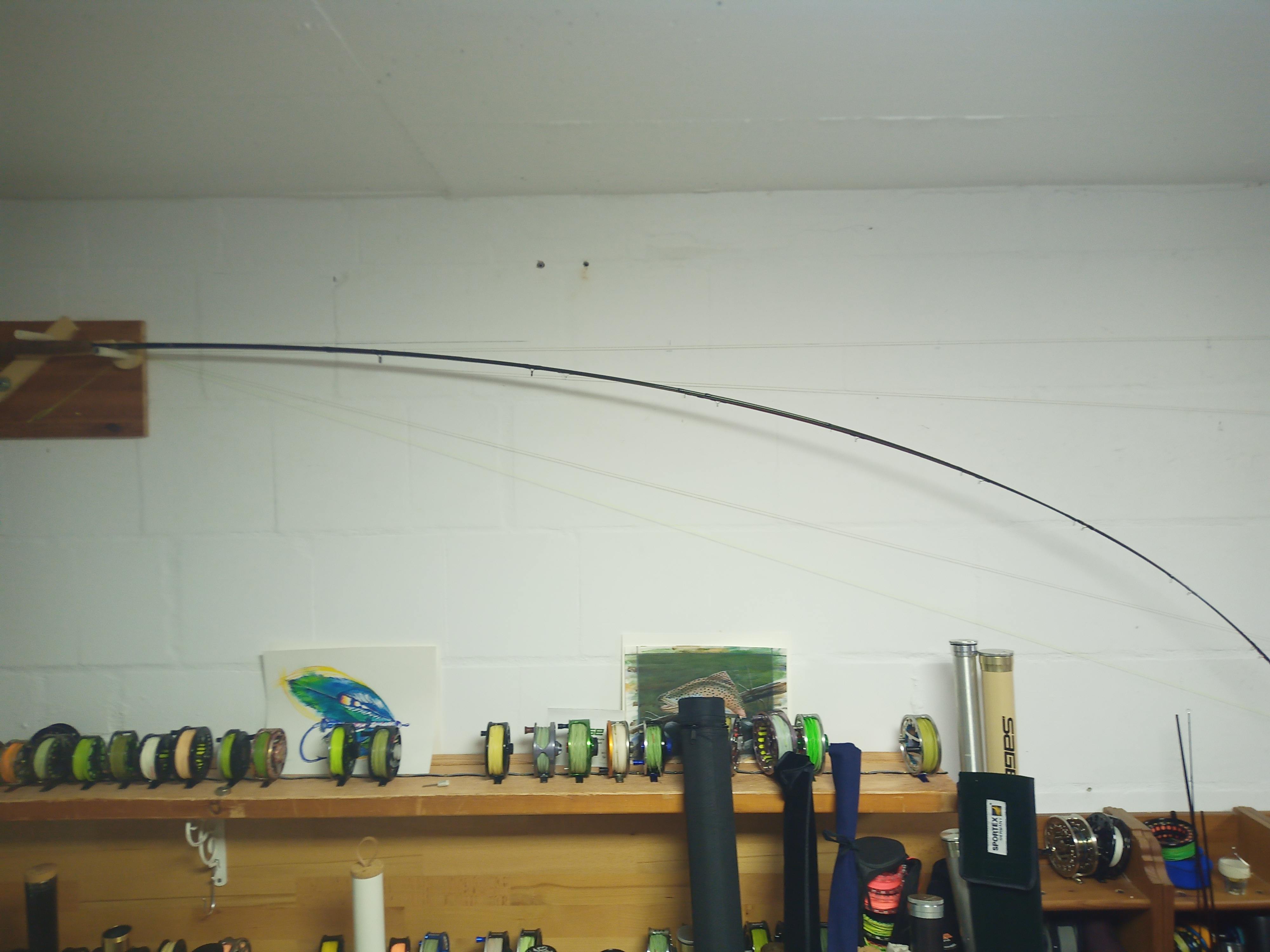 Und falls ihr euch fragt, warum ich mir überhaupt diesen Aufriss mache, habe ich noch zwei Belastungsbilder (wegen der Perspektive) meiner Loomis NRX zusammen mit der Parachute angefügt. Dass ich sie mit der Loomis verglichen habe, war wohl so eine Ahnung nach dem ersten Werfen. Ein echter Vergleich im Werfen kommt aber später. Wollte die Rute dafür eigentlich wie die NRX beringen, was jetzt ja wohl flachfällt.