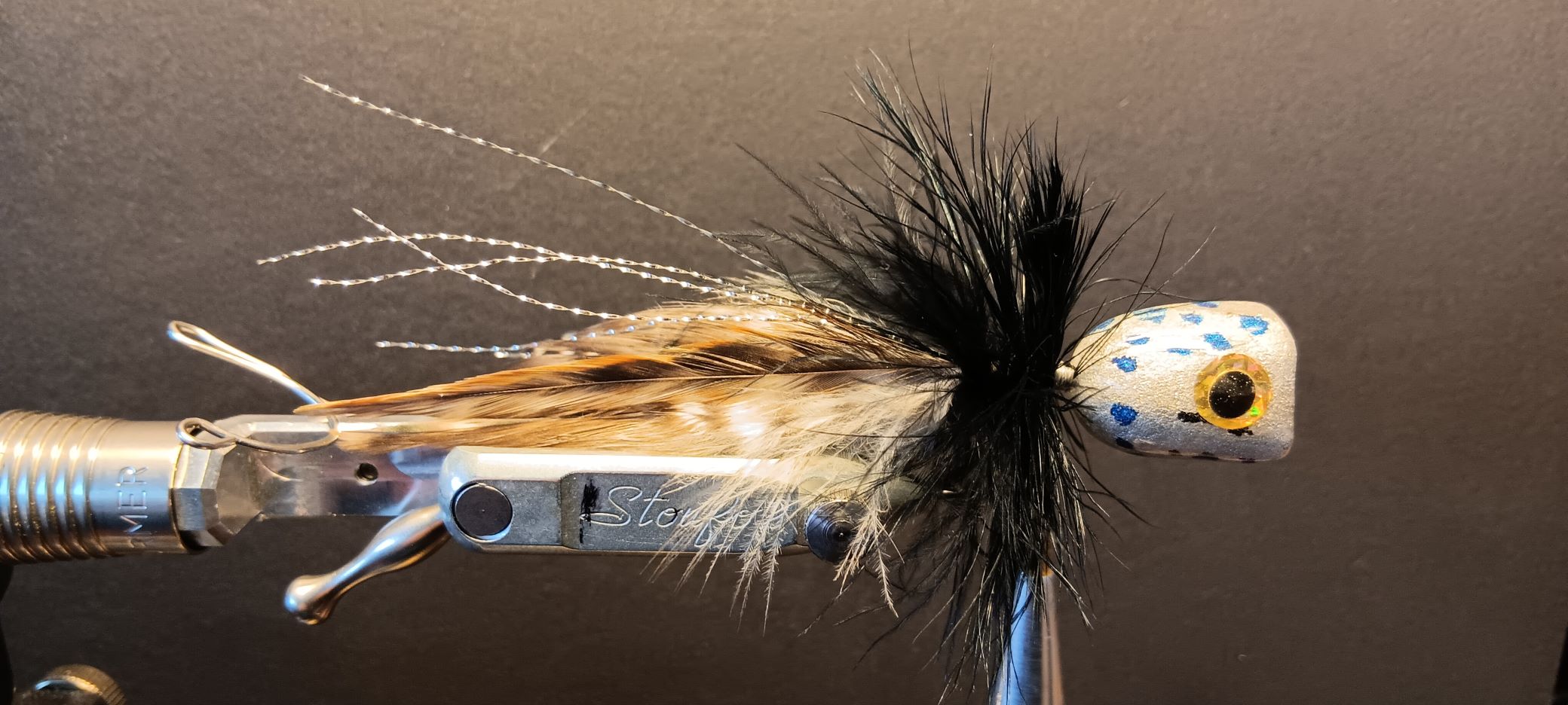 Am Gewässer eines guten Freundes hatten wir mal eine Bachforelle gefangen, die eine kleine Bisamratte im Schlund stecken hatte. Denke so ein braungrau Popper mit Zonkerschwänzchen würde so manche Trutte aus dem Versteck locken.