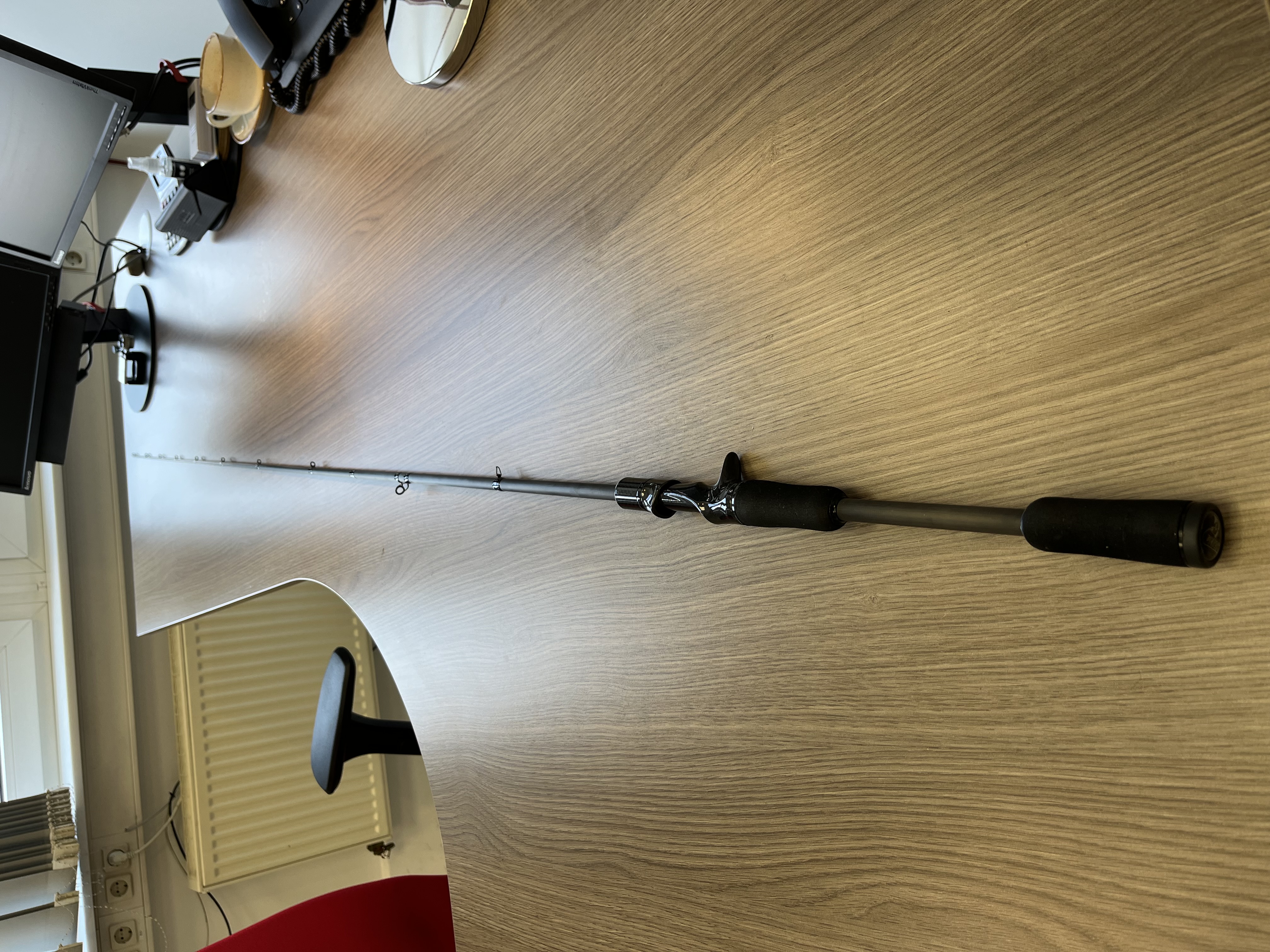 Die Rute ist wie gewohnt sehr schnell, ist aber mit einer schlanken Spitze ausgestattet, die etwas nachgiebig ist, ohne, dass sie weich ist. 30/40cm nach der Spitze fängt eine mega Backbone an. Gerade, wenn man beim Kajakfischen den Anhieb nur aus dem Unterarm setzen muss, ist das sehr hilfreich. Besonders bei großen Ködern. Hier die Blankparameter:
