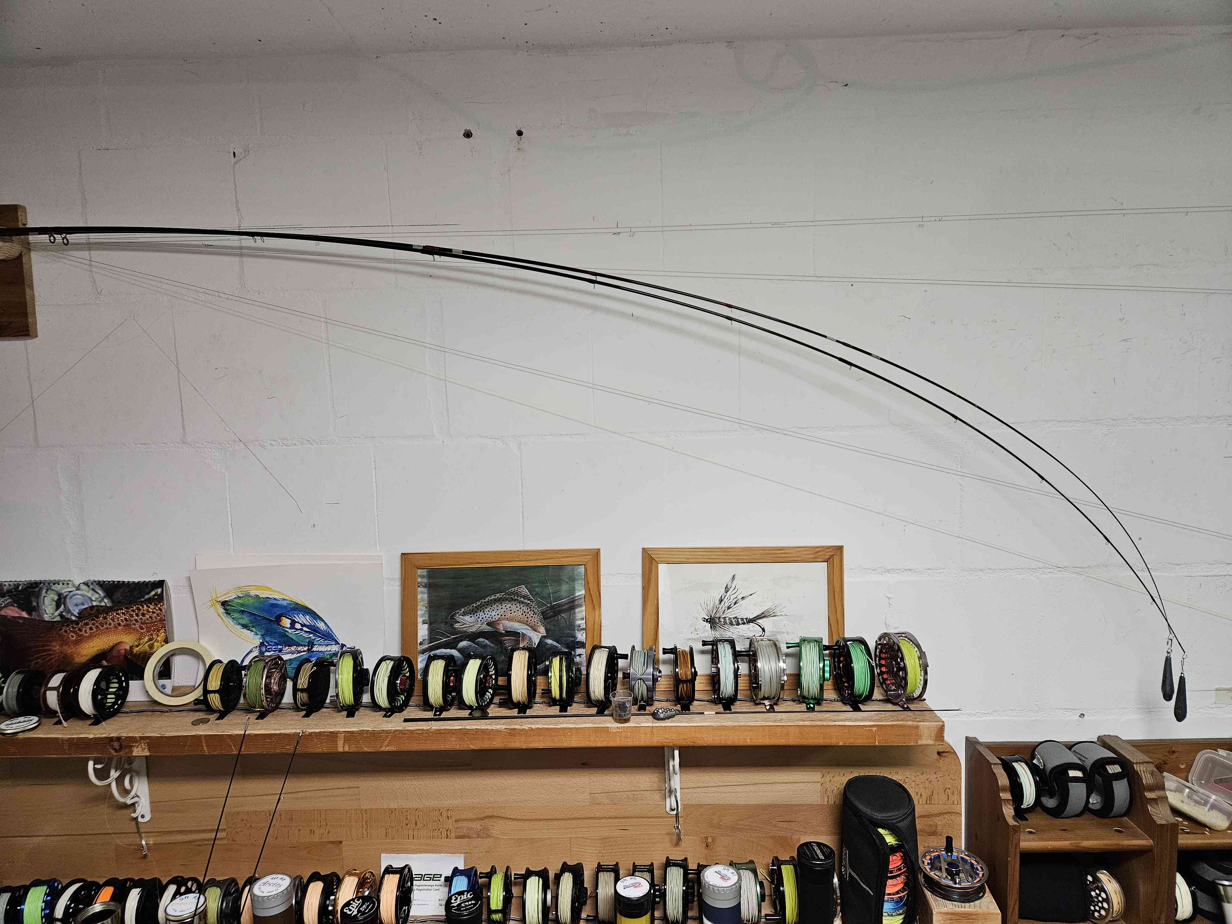 Das erinnert mich daran, dass ich vor 5 Jahren auch mal einen 7/8er Fliegenblank mit einer leichten Spitze ausgestattet und auch richtig ausgetestet habe. 2-7g war das WG nach dem Wurfgewichtsrechner von Theo M. Den unteren Wert konnte ich beim Werfen bestätigen, der obere hätte aber mindestens 15g lauten müssen. Leider nur unvollständig vermessen. Reinhard musste mich daran erinnern, was ich schon damals eigentlich wusste, dass die 15° Methode, bei solchen Spitzenaktionen, das Rückgrat überhaupt nicht abbildet. Ich muss bei der Rute noch mal die ERN bestimmen, mal sehen was die sagt. Leider wird eine Fliegenschnur durch die Ringe passen.
