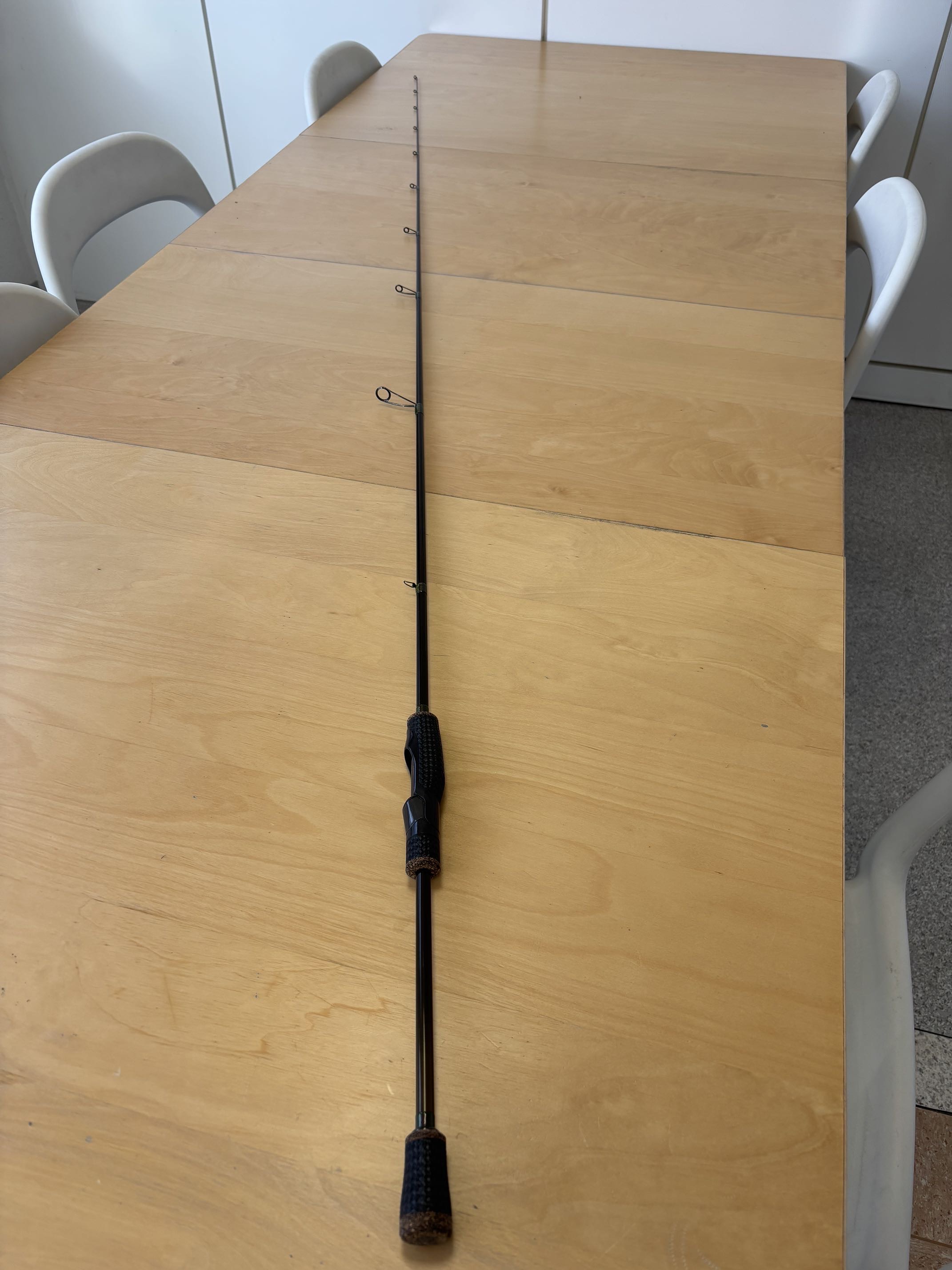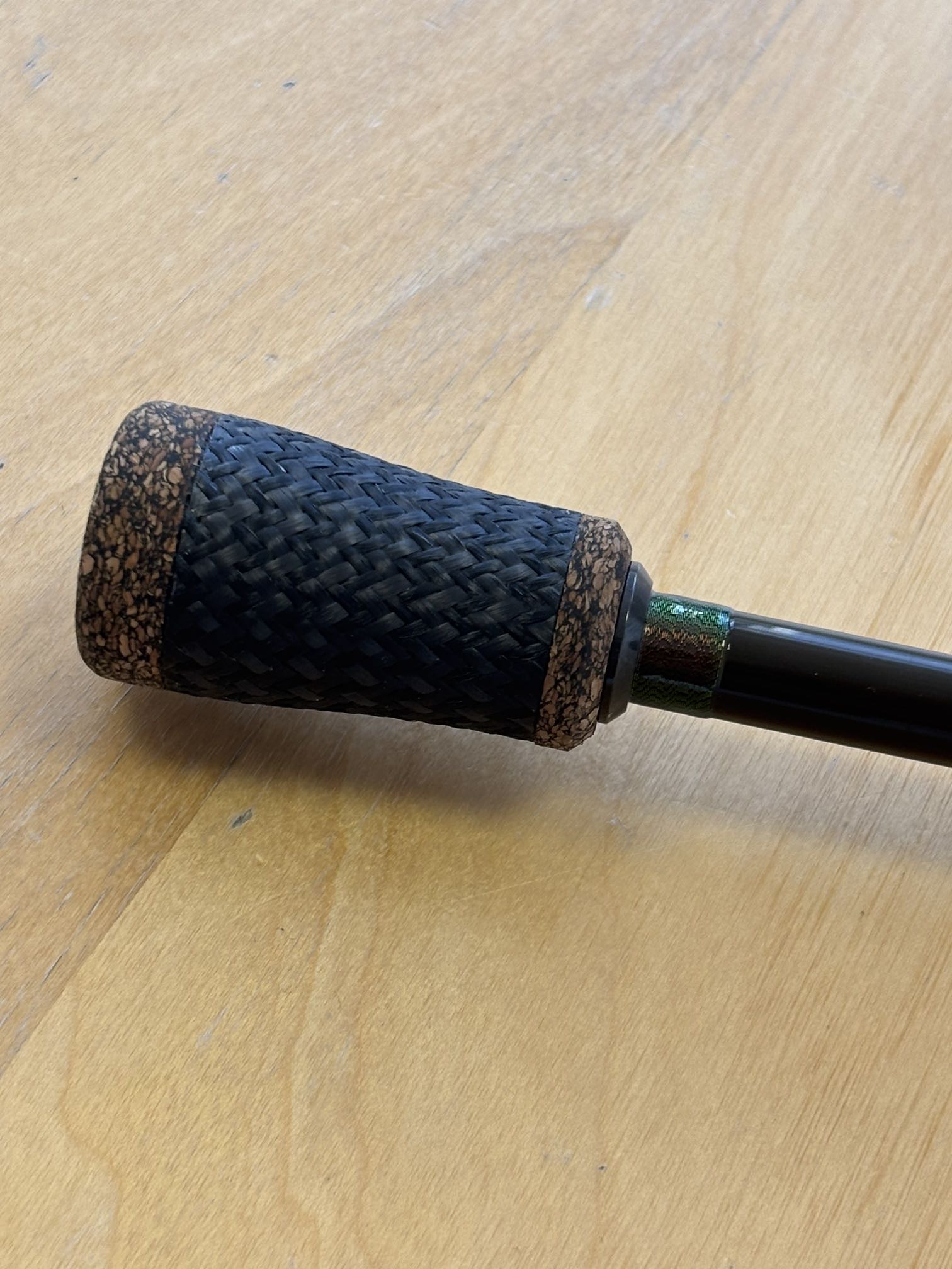 Der Stock hat etwas Flex in der Spitze, ein starkes Rückgrat, ist dabei schön schlank und schnell von der Rückstellung. Die aufgebaute Rute wiegt 80,8gr und liegt traumhaft und sehr ergonomisch in der Hand.