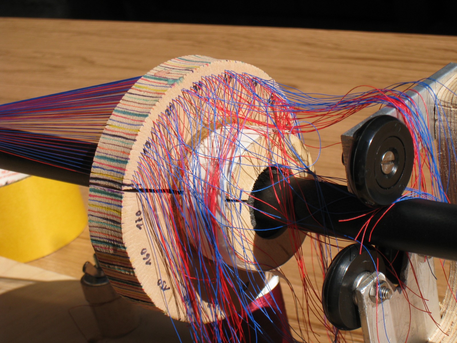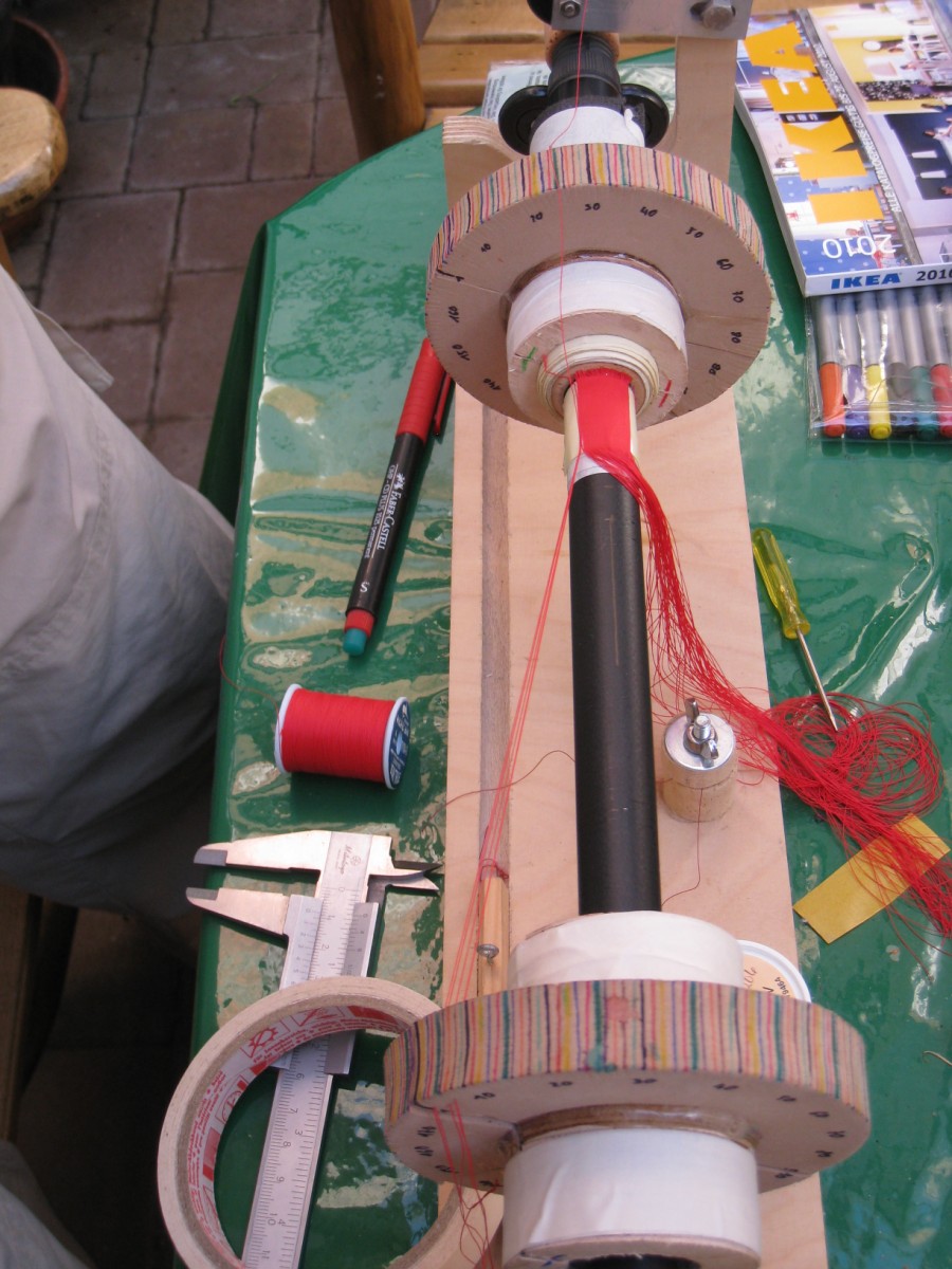 Für ein solches Projekt muss man eigentlich für jeden Rutendurchmesser ein eigenes - ich nenne es mal so - Werkzeug haben. Ist das Blank nur 1mm weniger im Durchmesser müssen ja gleich rund 40 Fäden weniger drauf - also 40 Schlitze weniger. Habe jetzt 3 Wochen Urlaub wo ich sicher mal genügend Zeit finder werde auf ein Stück Blank ein richtig geiles Bild mit 5-6 Lagen Fäden übereinader zu weben - wollte ich eh schon lange mal machen.