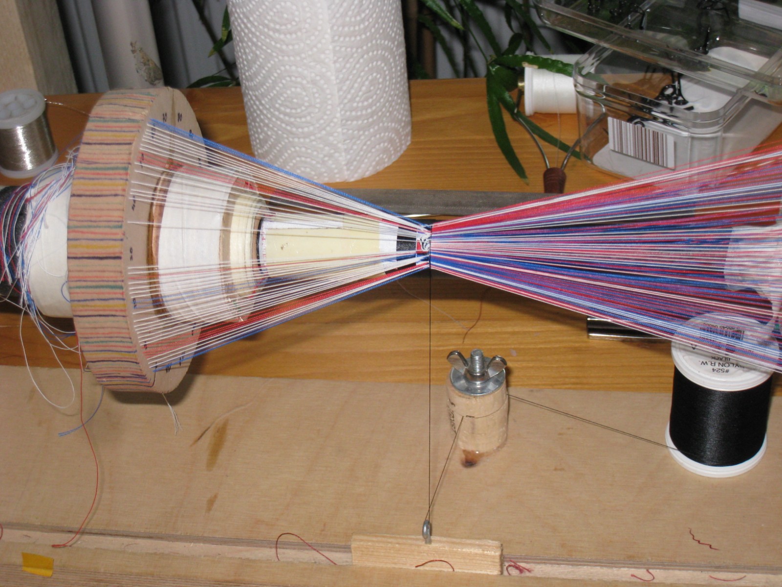 Zu beachten ist noch, dass ich hier jetzt die Fäden richtig stramm ziehen müsste, damitsie alle anliegen. Im Moment stehen ja einige noch etwas weit ab was sich aber nach 3-4 weiteren Wicklungen geben würde.