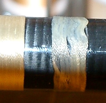 Fazit: Dieses Garn ist derzeit mein Favorit. Ich habe mich bereits mit der Firma in Verbindung gesetzt und warte nun auf eine Probelieferung mit mehreren Farben sowie einer Farbkarte aller zur Verfügung stehenden Farben. Es lässt sich von allen Garnen am Besten verarbeiten und bietet in der fertigen Wicklung eine schöne Optik. Einziger Nachteil ist die Spulengröße. So wie ich es bisher herausgefunden habe sind die 200m Spulen im Durchmesser dünner aber länger wie die normalen Spulen für den Rutenbaubereich. Mich stört die Größe der Spule aber weniger da ich sie nur auf einen Stift stecke.