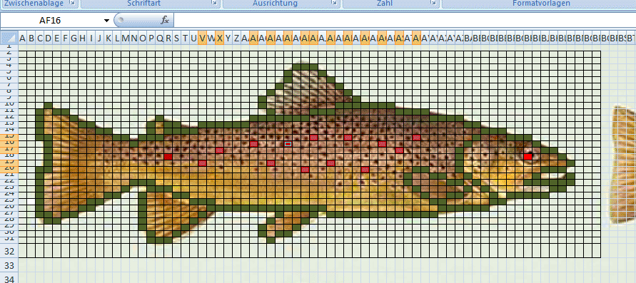 Ich wollte parallel zum Blank einige Zierfäden legen und überwickeln. An entsprechender Stelle will ich dann einzelne Fäden nach oben (sichtbar) holen. Habe versucht eine Excel Tabell zu nehmen, alle Zellen von der Größe her zu kleinen Kästchen formatieren und dann die entsprechenden Kästchen markiert. Die Zeilen stellen dabei meine Zierfäden und die Spalten die Wicklung dar. Bin aber noch zu keinem brauchbaren Ergebnis gekommen.