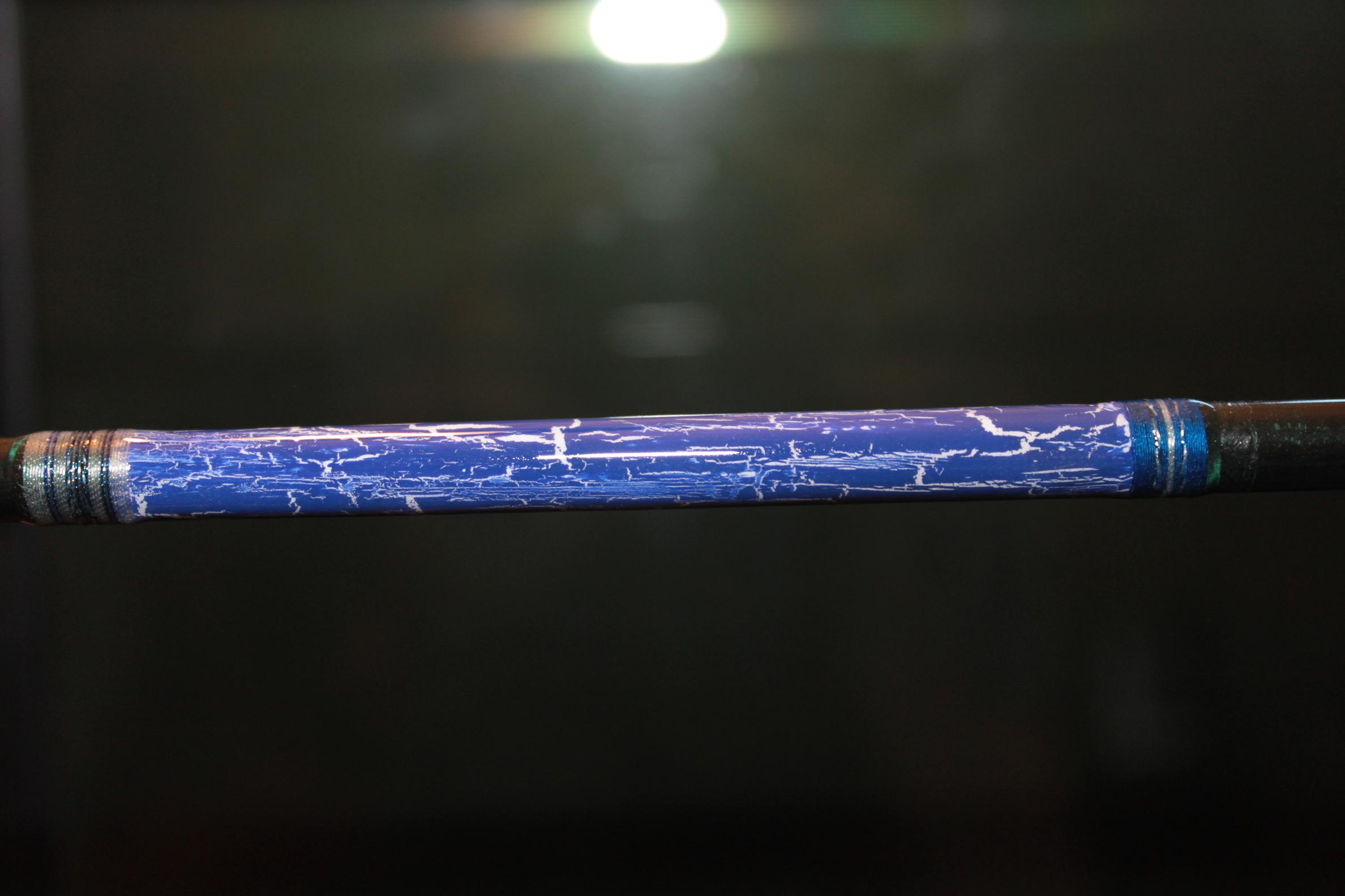 3. Kontrastlack als Deckschicht auftragen: Die Pinselstrichrichtung steuert dabei die Hauptrissrichtung! Also, wenn ihr längs am Blank entlang streicht, werden es hauptsächlich Längsrisse, streicht ihr quer zum Blank, werden es hauptsächlich Querrisse. Die von Seb vorgestellte Optik wird wohl nur über Sprühen erreichbar sein (keine Ahnung, keine Erfahrung mit Sprühen), oder mit einem ganz weichen Pinsel mit sehr dünner Farbe