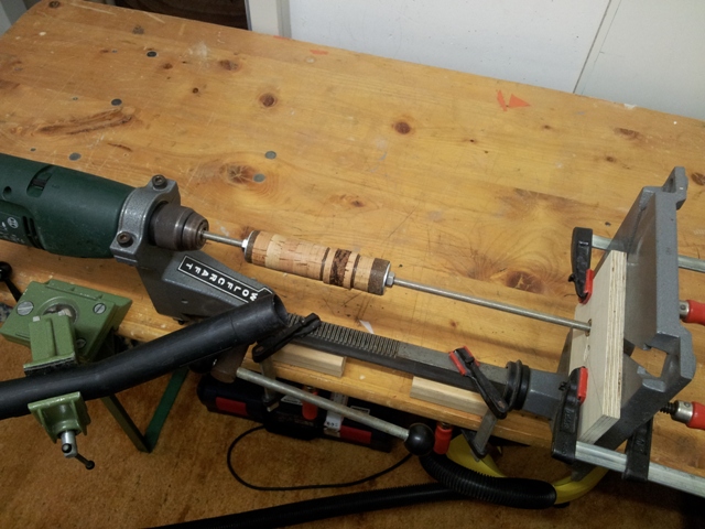 Sehr schöner Griff - und das "making of" ist klasse beschrieben und wird mir wohl gut weiterhelfen. Meine Drechselbank hab ich in einem Anflug von Wahnsinn verkauft, aber ein Bohrständer ist noch da :-) Muß nur mal sehen, ob der genügend Länge aufweist.