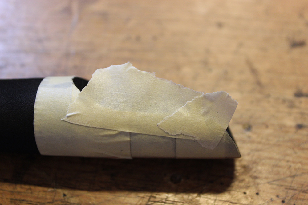 5.Das Klebeband vorsichtig abnehmen und an den Linien ausgerichtet auf den neuen Griff kleben. Bei mir überlappt der dünnen Steg etwas, sollte euch nicht passieren.