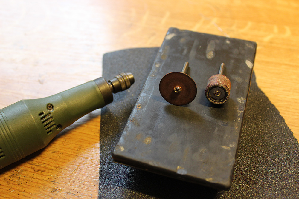 6. Den Ausschnitt könnt ihr jetzt langsam mit entsprechenden Werkzeugen ausarbeiten. Auf dem Bild seht ihr mein Setup für Birkenrinde.