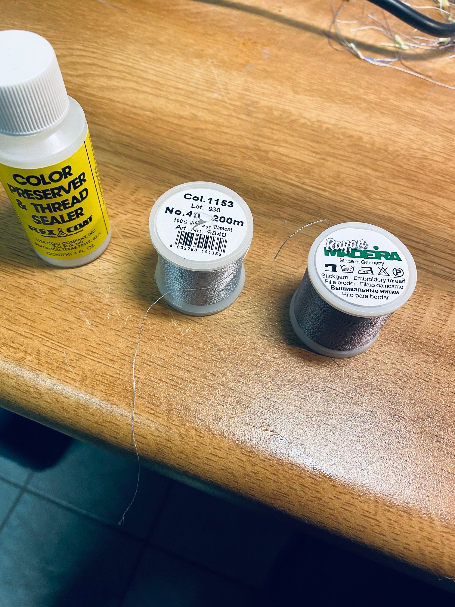 Servus, habe ja auch erst vor kurzem dieses Madeira verarbeitet, jedoch einen anderen Fixierer ( siehe Bild) und hatte keine Probleme mit dem Garn.