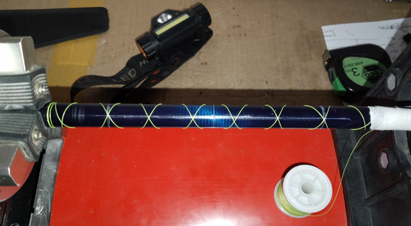 Jedenfalls hatte die Rute einen fancy Sticker vor dem Rutengriff, der mit Bindungslack lackiert war. Nur der hatte gar keinen Stoß. Ja und dann habe ich mich mit der Möglichkeit beschäftigt, Ruten selbst zu bauen. Erst mal nur in Form passiver Information in US Foren, wie Rodbuilding. org. Da gab es weitere fancy Bilder und so wusste ich bald, dass das da an der Rute eine Kreuzwicklung war. Damals gab es ein paar Rutenbauer im Angelboard und so habe ich mir mit ein wenig Abschauen, Ende 2017 eine Rutenbindebank gebaut, und kurz danach gab es dann Anfang 2018 dieses Forum, wo ich dann nach einigem lesen, Mitglied geworden bin.