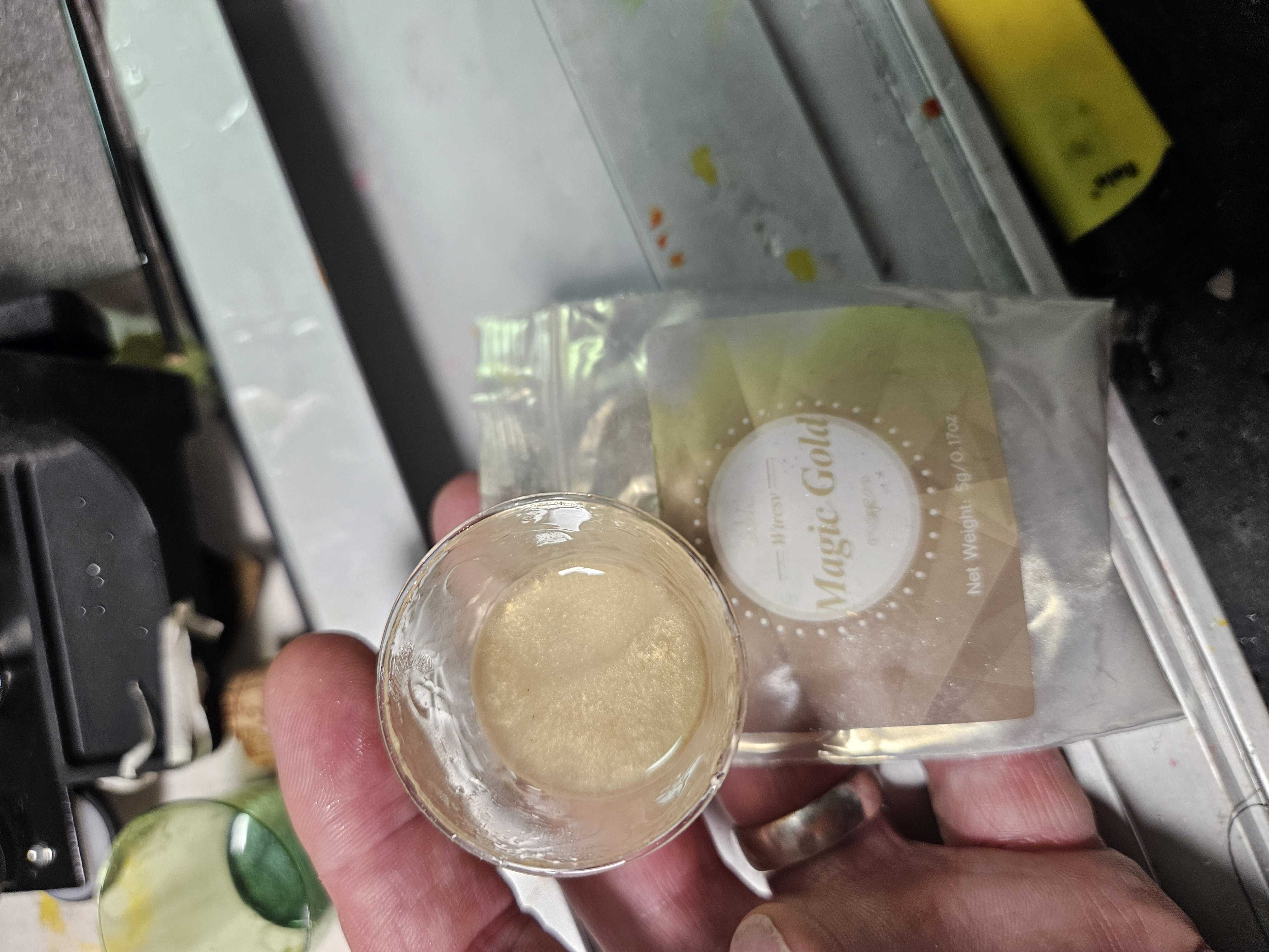 Gibt es als Set mit sehr vielen Farben und hier habe ich Magic Gold verwendet. Mein Lack härtet auch problemlos aus