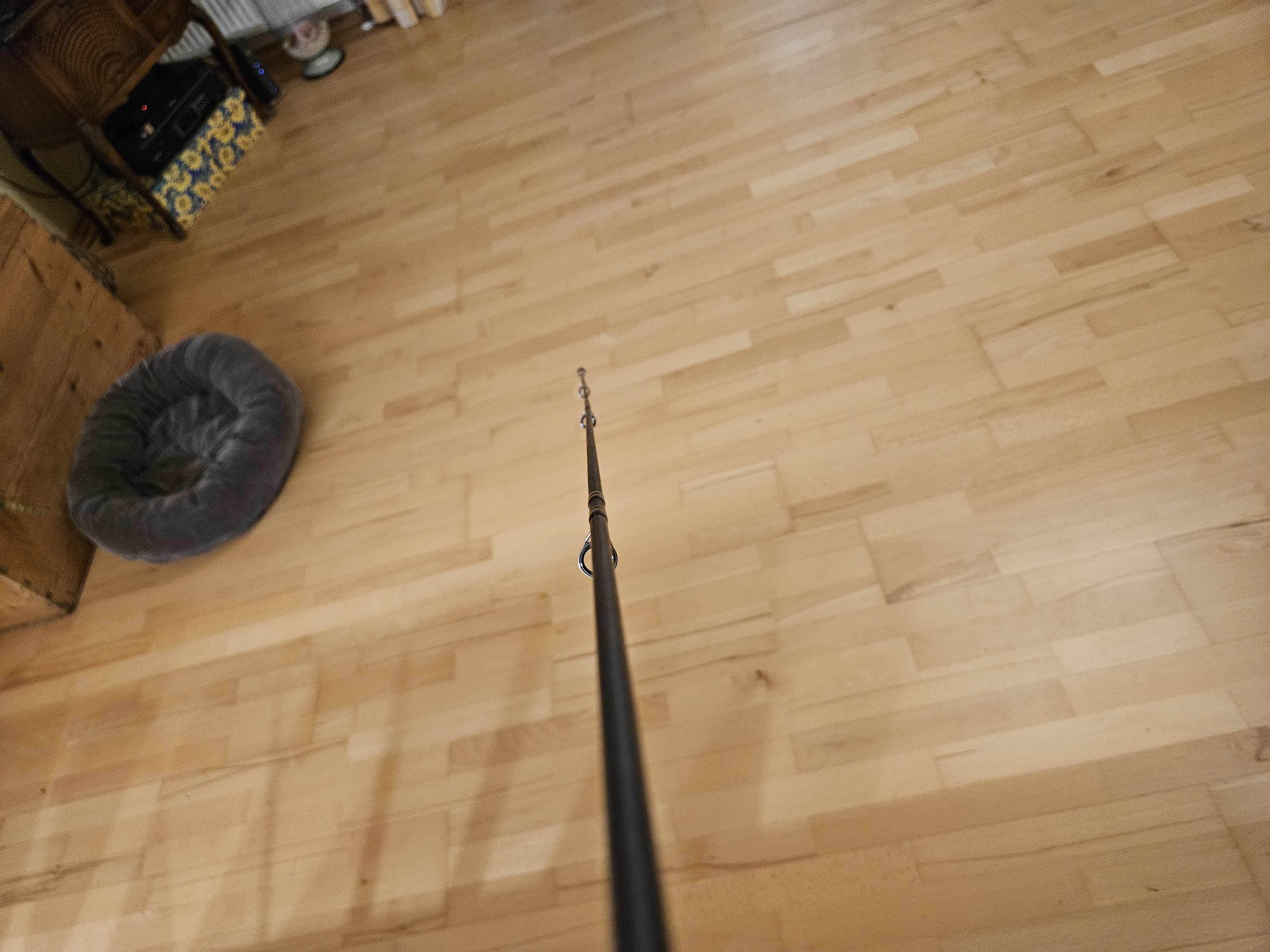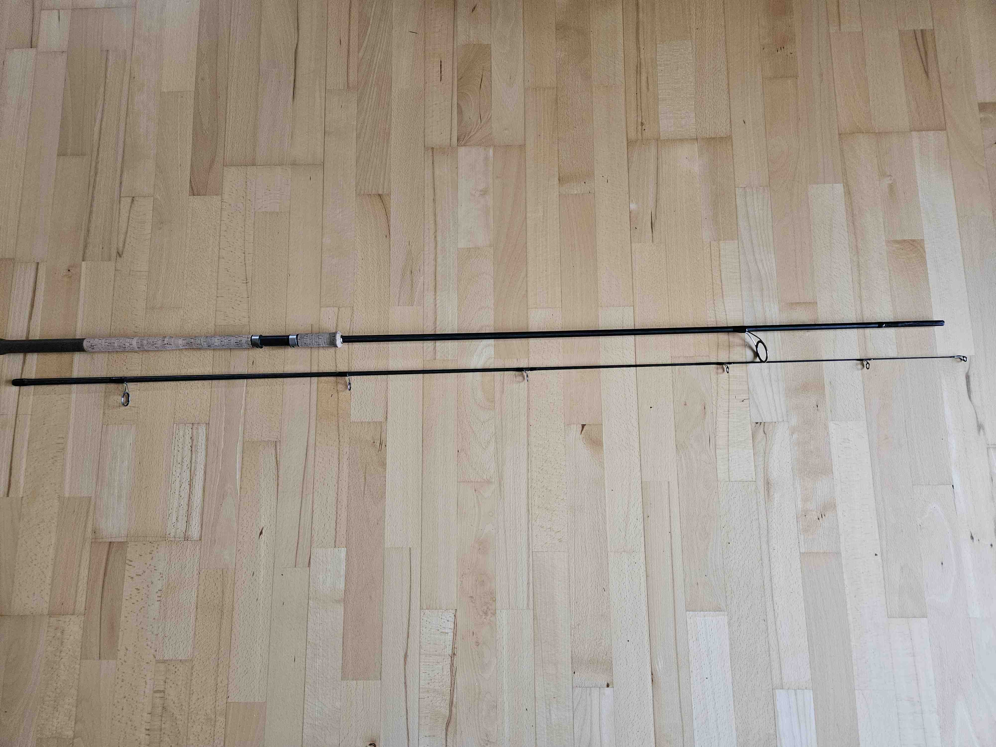 ich weiß auch nicht wer ursprünglich diese Ringe draufgemacht hat. Wenige Ringe mit sehr großem Starter passt zu einer Karpfenrute, bzw. wurde/wird? auch durchaus für weite Würfe empfohlen. Reduktion anscheinend nach NGC. Ist auch ein sauberer Tunnel. Der Griff wurde auch sehr beschwert um die Rute in der Hand auszubalancieren, also als Spinnrute gedacht. Ich vermute die Rute wurde als Spinnrute für weite Würfe aufgebaut. Die Ringe sind anscheinend aus Titan, da überhaupt nicht magnetisch, (wie mir gerade auffällt). Eine einleuchtende Begründung für einen Wechsel von Einsteg auf Zweisteg fällt mir nicht auch ein. Kenne ich höchstens umgekehrt um den/die großen Ringe stabiler zu machen.