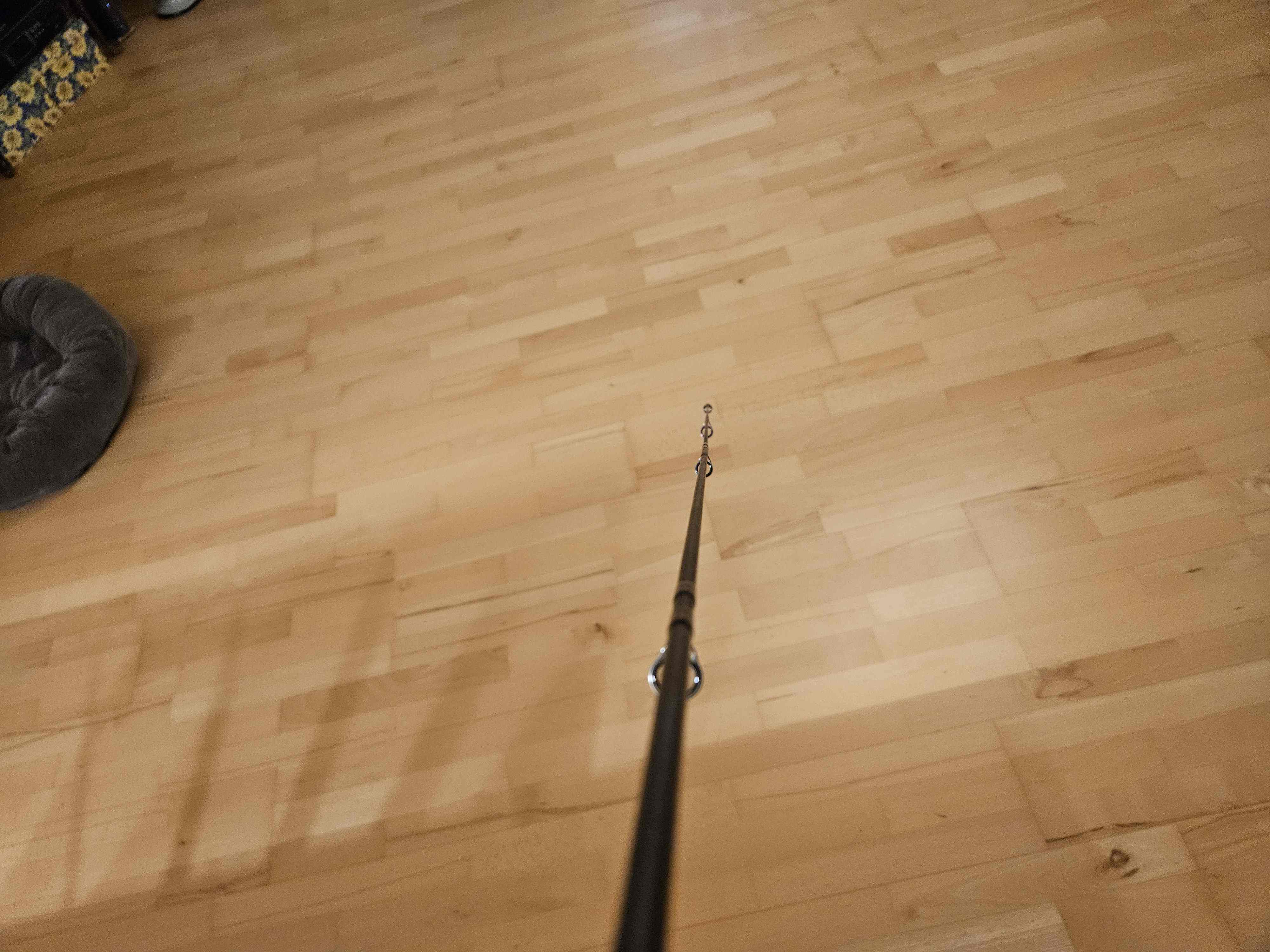 Es gibt aber eine Ebene, bei der die Rute fast perfekt gerade ist, sich nahezu oben krümmt und die Ringe nach dem Springpunkt ausgerichtet sei könnten. Das letzte Bild der ersten Serie zeigt das annähernd.