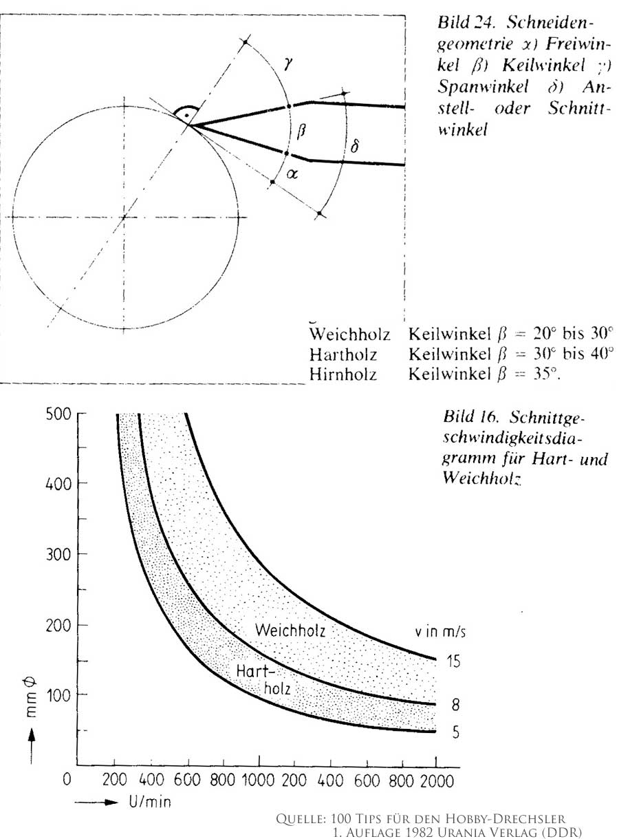 wichtig beim drechseln von Holz sind die Anstellwinkel sowie die Geschwindigkeiten.