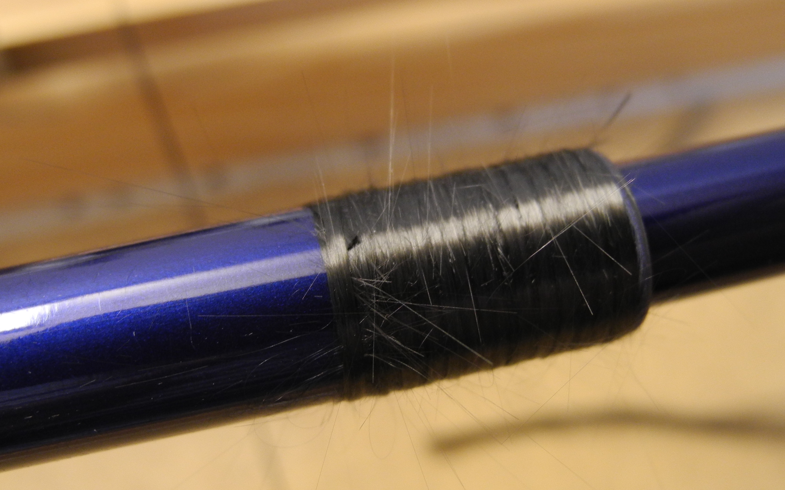 Deine Reparatur ist sehr gut und haltbar, ähnliche Ergebnisse habe ich mit fireline als Bindegarn, dass ich normal mit Rutenlack lackiert habe. Hält auch nach einem Riss wunderbar.