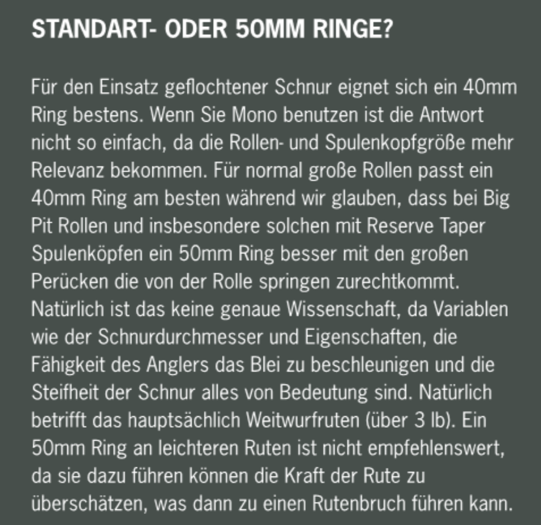 Alle meine Ruten besitzen 40mm Startringe und langsam frage ich mich ob bei starker Mono vllt. doch ein 50mm Startring Sinn machen könnte.