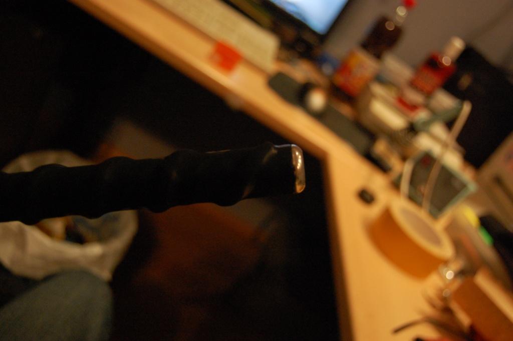 Durch das Telefonkabel unter dem Schrumpfschlauch dürfte das ganze auch recht Griffsicher sein. Wenn einem also mal die Rute aus der Hand flutscht und man sie nur ganz am Ende noch zu fassen bekommt....