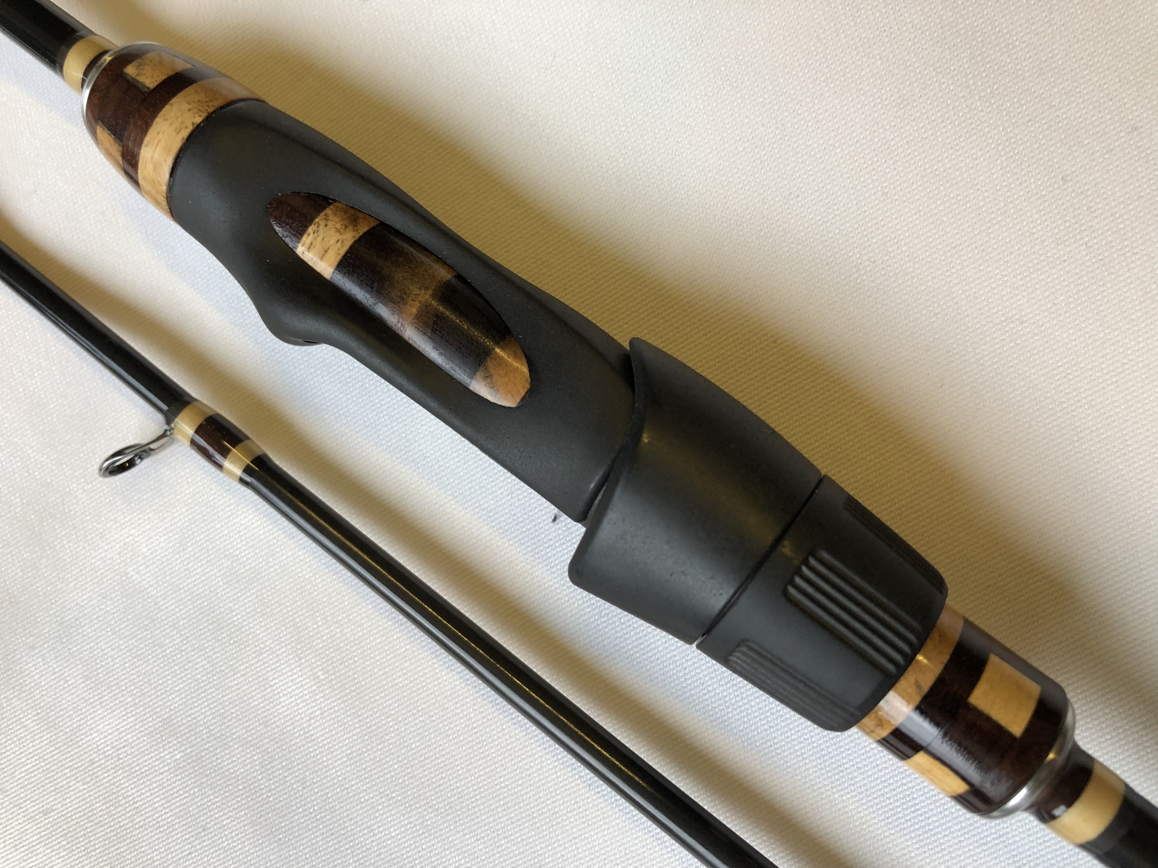 nicht das ich wirklich alles an Ruten von den Amis gut finde. Ich bin gerade neulich erst wieder über einen Typen gestolpert, na, also schlimmer geht es nicht. Wirklich wahlos zusammen gestückelte Griffe aus buntem Kork und Holz. Ätzend! Aber, sie (die USA Rutenbauer) haben auch ganz außergewöhnliche und regelrechte Künstler und ihr Vorteil: sie wagen mehr , hin zu mutigem Design. Ok, vielleicht mal über's Ziel hinaus, aber die alten Europäer haben jetzt nicht unbedingt immer den guten Geschmack gepachtet.