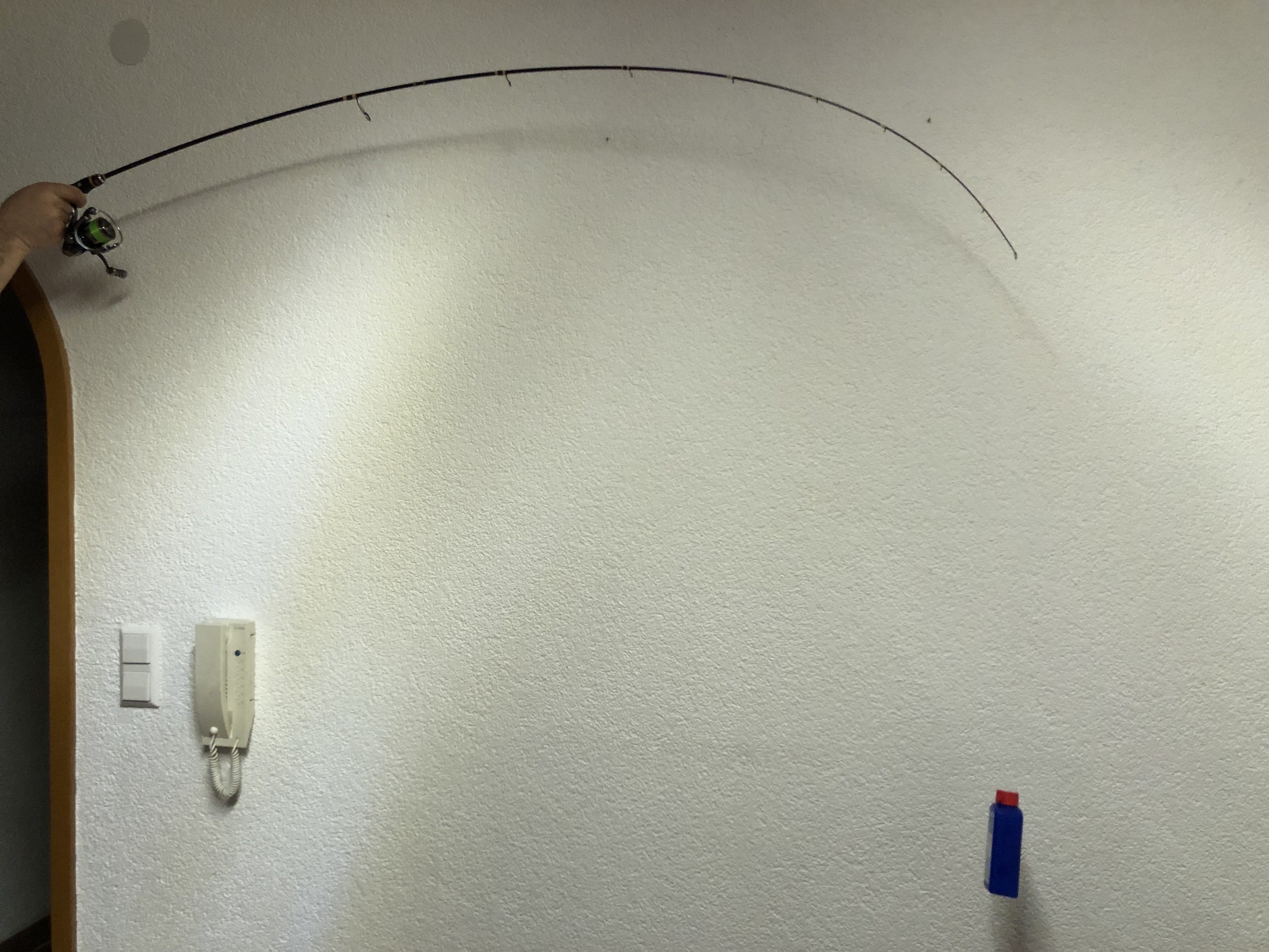 In der vorletzten Bild ist die Rute mit eine 250ml Flasche belastet das ihr die Aktion sehen könnt.