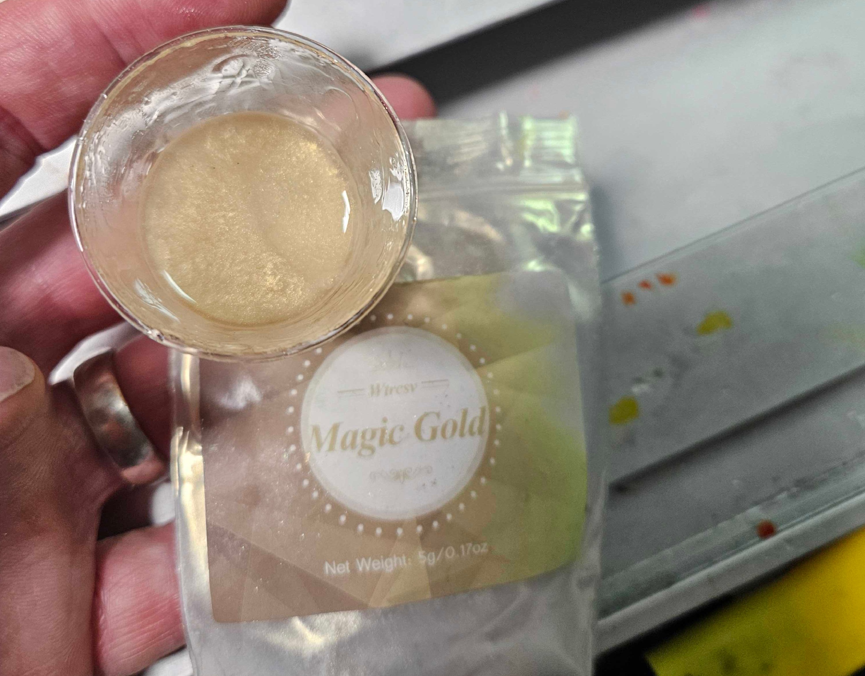 Gibt es als Set mit sehr vielen Farben und hier habe ich Magic Gold verwendet. Mein Lack härtet auch problemlos aus