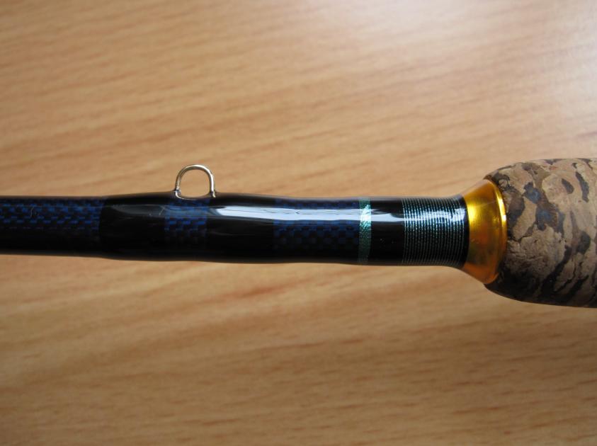 Hab den Firejerk S Blank an der Spitze noch gekürzt das ein Durchmesser von 3mm übrigblieb,das Endteil hab ich gelassen.Diesmal hab ich zum testen mit HT-Metallic gewickelt und "nur" Alconite Ringe verbaut.Mal sehn wie das ganze auf Dauer hält.
