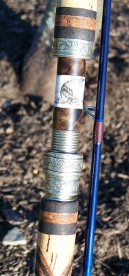 Also die Wettbewerbsrute bekommt einen solchen Griff. der Rest der Komponenten sollte dezent dazu passen. Hatte noch eine Alurollenhalter der mir vom Design her supergefallen hat. Also Griff klar Brike + Alu daraus folgte Abschluß auch Alu und die Ringe natürlich auch Alu.