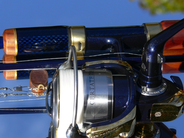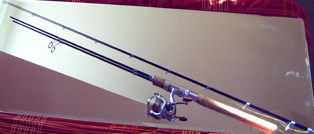 (Sorry, der Spiegel ist staubig, die Rute auch. Außerdem sind ein paar Wasserflecken drauf, hab sie nämlich heute gleich mal eingeweiht. Topwater