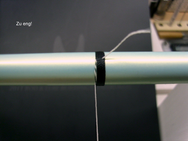 Meiner Erfahrung nach sieht das ganze besser aus, wenn der eigentliche Wickelfaden in Stärke"D" und der Zierfaden in Stärke "A", ausgeführt wird. Den Zierfaden kann man auch doppelt legen, schaut dann nicht gar so fein aus...