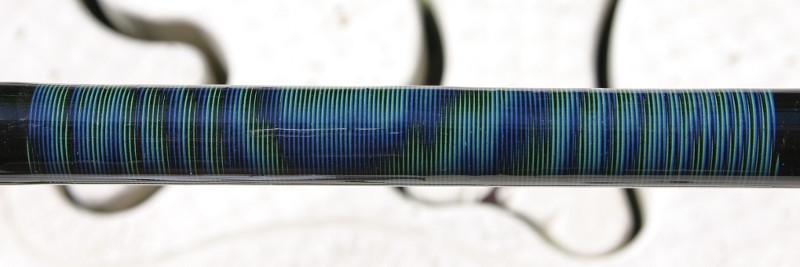 Mann kann inder ersten Wickellage auch gerne mehrere Farben nehmen, wie auch in demTutorial. Da wär mein Vorschlag, auf dunklem Blank, in der ersten Wickelschicht schwarzes Nylon mit lila und grünem NCP, zu kombinieren. In der Deckwicklung tät ich dann schwarzes oder dunkelgraues Nylon hernehmen. In der ersten Wicklung ist es vorteilhaft, wenn zumindes die Farben , die man erreichen will, ihre Farbigkeit beim Lackieren, nahezu beibehalten, also z.B.NCP-Garn oder metallic. Deckwicklung find ich in Nylon gut. Nur Nylon in der ersten Wicklung, dunkelt komplett nach.
