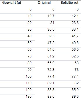 Nachtrag: Ich habe mir nochmal die Freiheit genommen und die Flächen aus dem letzten Diagram , anhand der Werte aus der Tabelle darüber für Solidtip 2 und Original auszurechnen, da komme ich auf 0,427 Joule und 0,455 Joule, aber ich muss wegen den wenigen Punkten die Trapezregel bei der Berechnung annehmen.