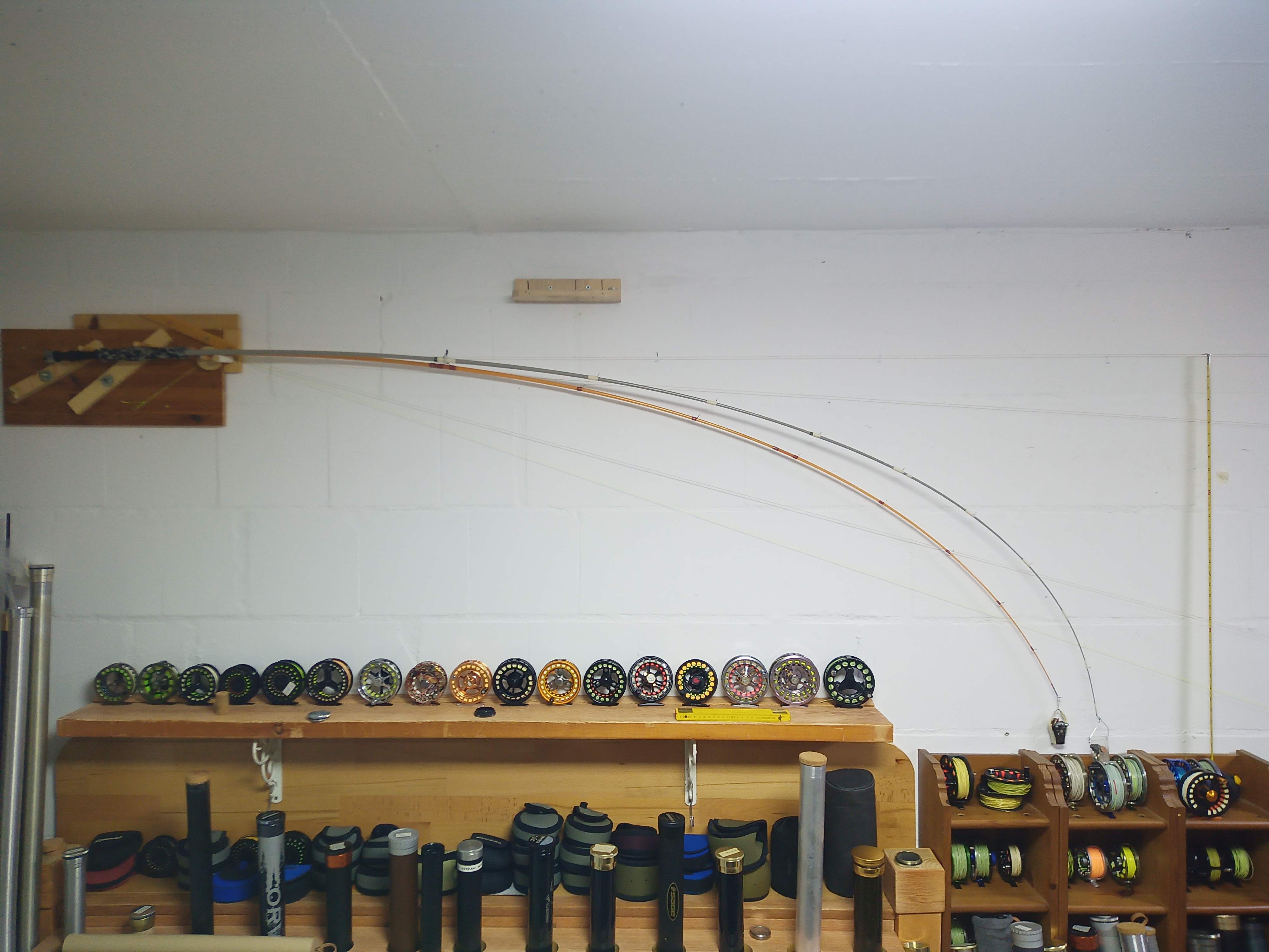 Ich schaue mal ob ich es morgen schaffe die Ruten mal entsprechend weiter auszulenken. Mein Rutenregal habe ich tatsächlich verschoben, um Platz zum Messen der größeren Auslenkung zu schaffen. Wird aber trotzdem eng mit meinem Platz nach unten, wenn ich 1/3 der ganzen Rutenlänge nehmen muss.
