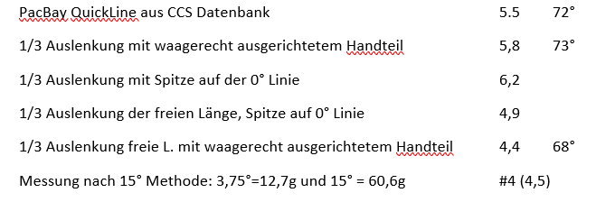 And now the results of the Pacbay Quickline 9ft #7 in the German Rod Measuring Comparison. Ich habe alles noch mal ganz genau nachgemessen!