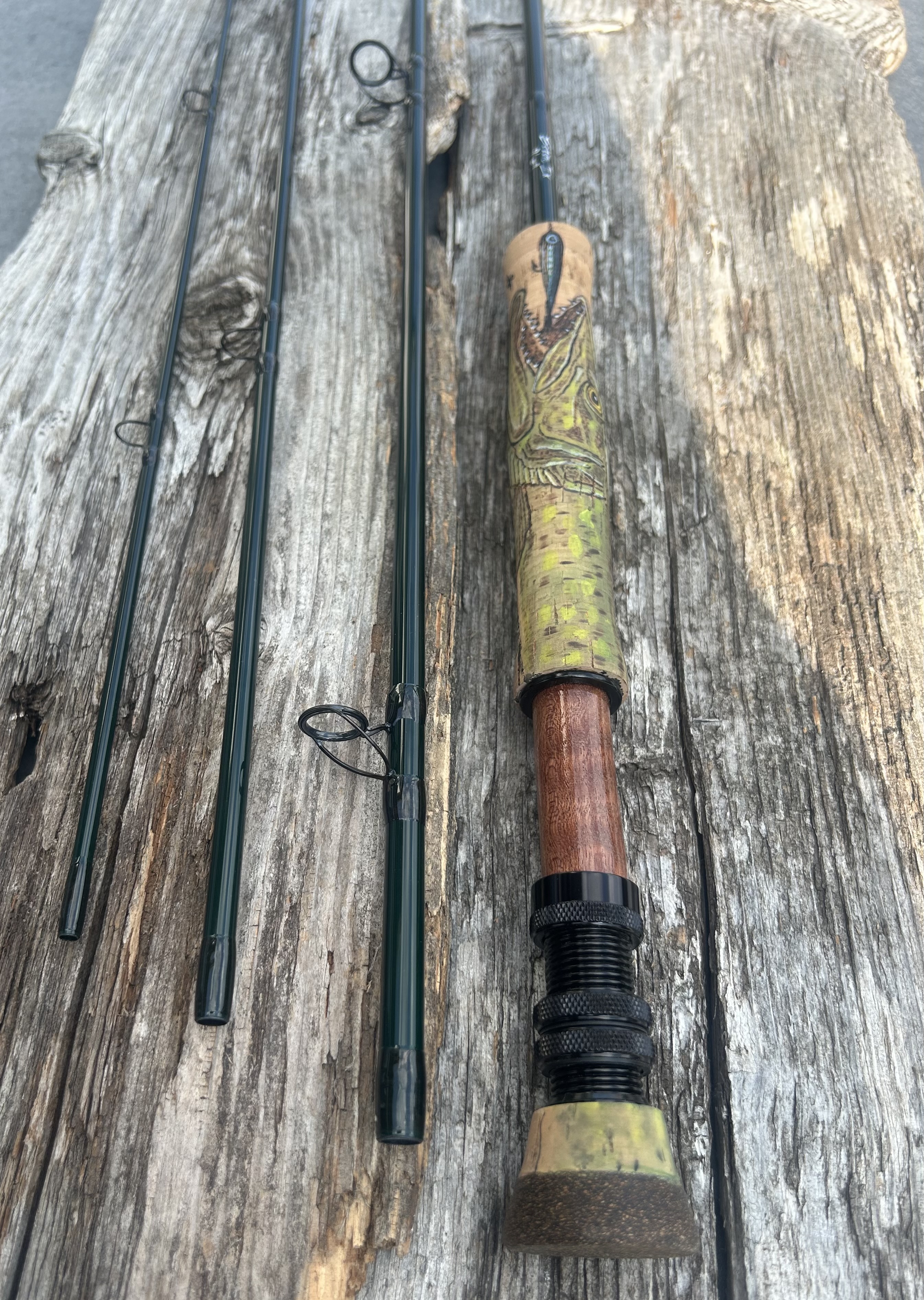 Ich wollte mir eine Rute zum Streamerfischen auf Hechte aufbauen - aber mir hat die Idee zum Design gefehlt….die zündende Idee war irgendwie nicht dabei. So stand das Blank dann viele Monate in meiner Männerhöhle im Keller und hat auf diesen Tag gewartet - treu und zuverlässig großes Grinsen