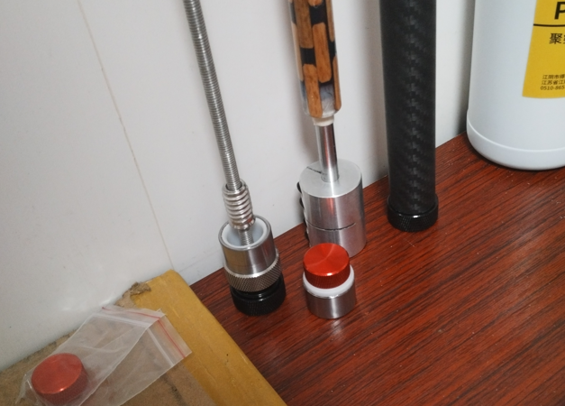 Die Frage war nun, welchen RH. Bezüglich eines Spacers habe ich ein wenig rumgespielt. Da hatte ich dieses ganz dünne Alurohr und dann habe ich da Holzdübel draufgeklebt. Danach habe ich mir ein Gießharz zurecht gemischt und mir den Rohling gegossen. Das habe ich dann ab gedrechselt, alles so halb Freihand und nun will ich mal sehen, ob sich das irgendwie verwenden lässt.