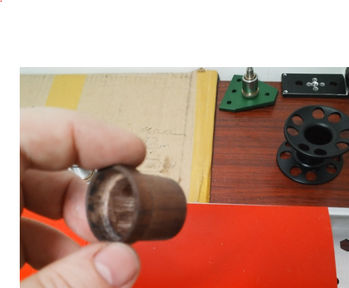 Ich habe also halb blind eine Spule bestellt, von der ich annahm, dass sie eine brauchbare Größe aufweist und die Qualität ist tatsächlich zufriedenstellend. Ich schätze das ist 6061 mit recht guter Eloxierung. Bischen doof ist, dass die ein wenig gewölbt ist, wegen später Kurbel anbringen, aber das wird auch noch werden. Es geht ja auch für das Funktionsmodell erst mal vorrangig um den Spulenkern, der hier 25mm weit ist. Dafür musste also etwas gedrechselt werden, wass auf die fertige Brems- Freilauf- einheit passt und auf das dann die Spule passt. Da hatte ich noch so ein kurzes Stück stabilisiertes Holz, das hat dann für die erste Funktionsprobe hergehalten hat. Gleich danach war auch die max. kurze finale Einheit Bremse mit Freilauf fertig. Das ist genau so für mich zufriedenstellend und funktioniert überraschend gut. Der Aufbau wird genau so, bei weiteren möglichen Rollen reproduziert. Auf der einen Achse wird sowohl die Bronzehülse, gegen die die Bremse fährt begrenzt, als auch die Freilaufhülse, mit einer zweiten Verschraubung. Wer mal sowas baut, wird verstehen, was da die Schwierigkeit ist.