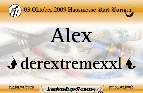 @Mark: Deinen Schritt finde ich sehr schade, aber auch sehr kindisch! Zu diesem Event werden viele Rutenbauer aus ganz Deutschland und auch aus Österreich dabei sein. Wenn man sich mit einem nicht versteht muss man dies doch im Grunde nicht an allen anderen auslassen die sich auf dieses Treffen sehr freuen. Sehr schade und ich hoffe du überlegst es dir noch einmal. Ich möchte hier jetzt aber keine Diskussion über dieses Thema haben, denn die gibt es in einem anderen Forum ausschweifend genug!