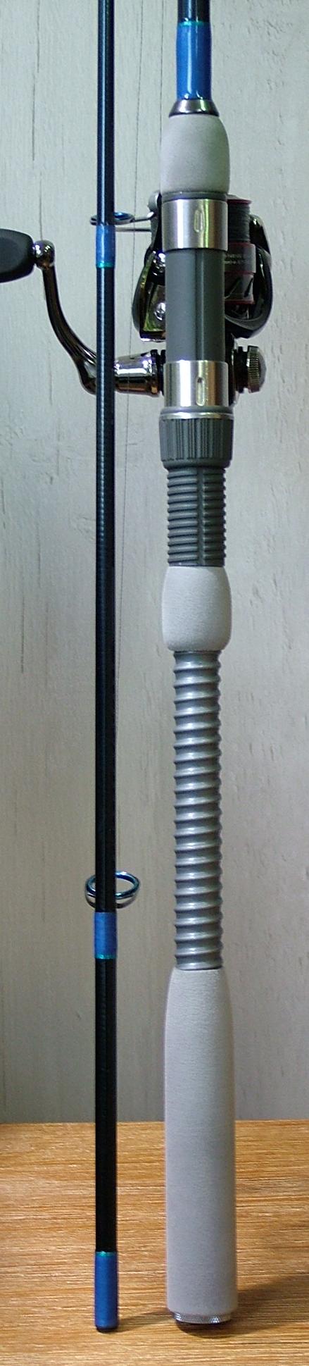 Die letzte Rute - No 08 - habe ich am Wochenende aus Restbeständen der bislang georderten Teile gebaut. Sie ist als kurze, einteilige Rute zum Vertikalfischen vom Kajak aus auf Barsch und Zander gedacht. Heute hab' ich den Griff-Blank ins Spitzenteil eingeklebt und den RH fertig montiert - mit nur 174cm und einem Gewicht von 84 Gramm für mich ein echtes Leichtgewicht. Nur mit dem Einweihen wird's noch etwas dauern - momentan ist mir die Wassertemperatur fürs Fischen vom Kajak aus definitiv noch zu niedrig. großes Grinsen