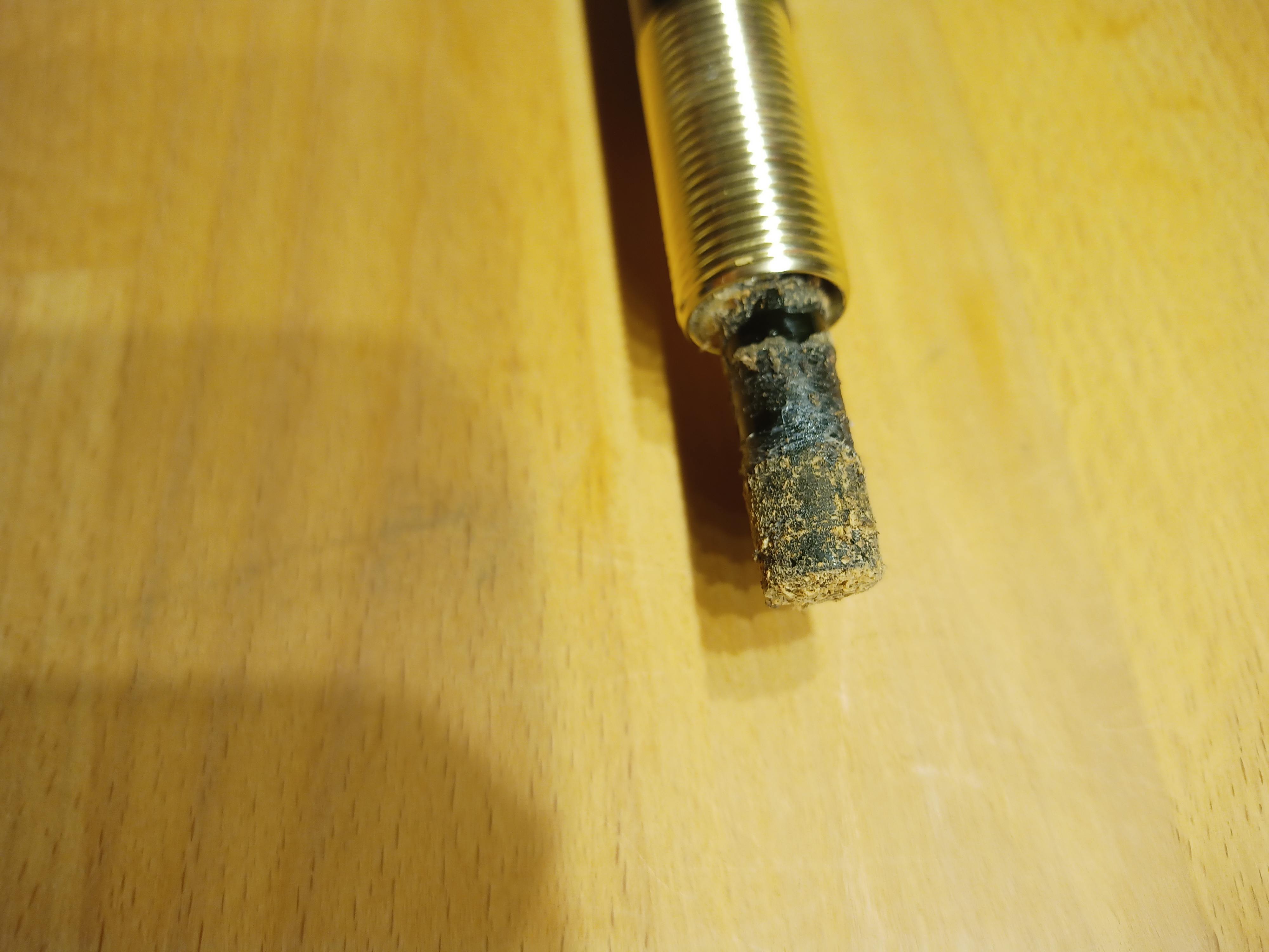 den Rollenhalter konnte ich tatsächlich nur runtersägen. Er war reichlich verklebt und hat einen Aufbau der mir neu war. Das Gewinde und der der Spacer waren saugend auf eine Aluhülse geklebt und diese auf zwei schmale Tapestreifen aufgeschoben und mit viel Kleber verklebt. 2/3 des Hohlraums waren mit Epoxy gefüllt. Also kein Wunder, dass sich da nichts bewegt hat. Er ist dadurch auch nicht der superleichte Rollenhalter für den ich ihn gehalten habe.