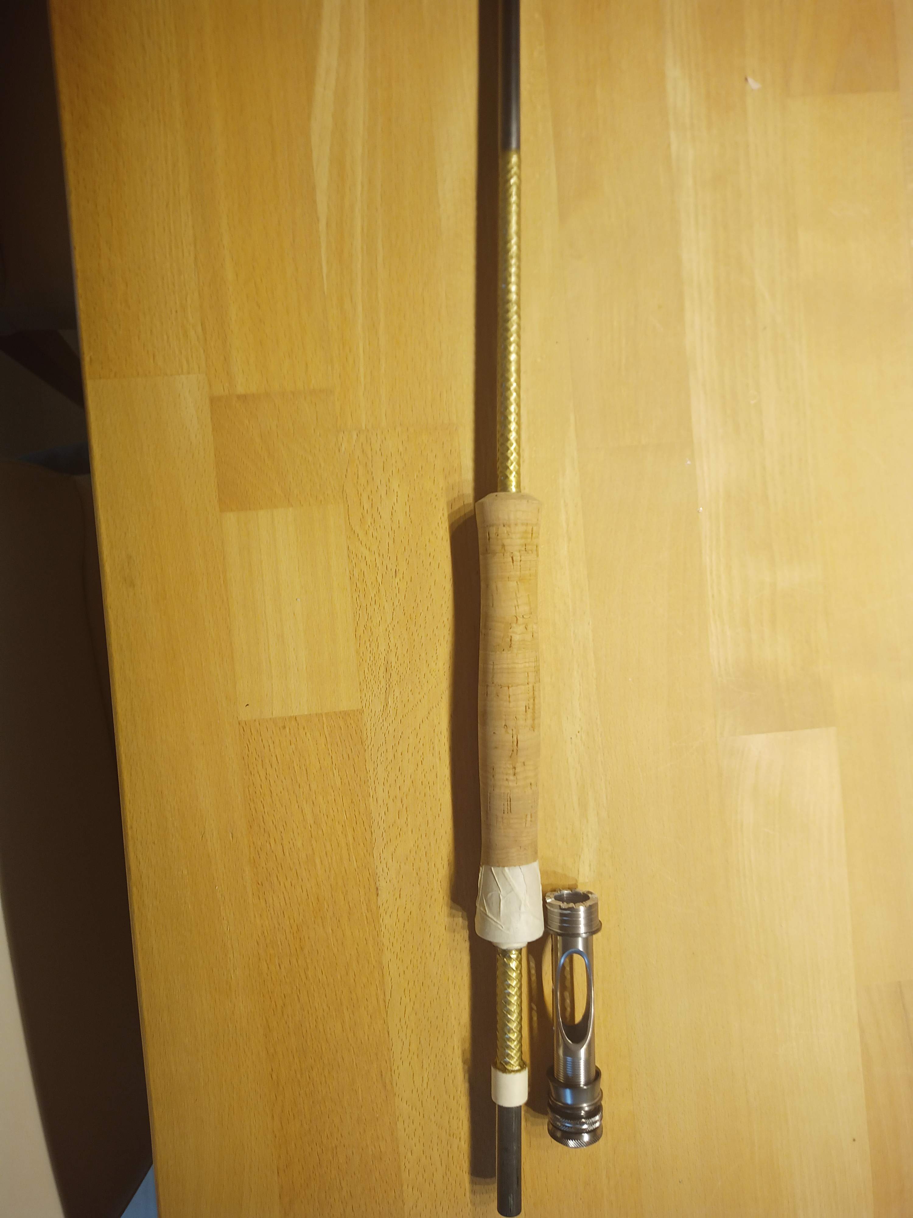 Einschub: Es ist tatsächlich meine fünfte Rute von MC. Eine liegt noch original im Keller und die erste habe ich nie vorgestellt und auch schon lange weitergegeben. War wohl eine der frühen Ruten von MC, eine V-Tech in #5 (tatsächlich eine kräftige #6). War ok, mehr aber auch nicht. Hatte einen Fehler weit oben in der Spitze, die war schief. Es war eine Falte beim Aufwickeln des Prepregs, die man aber erst sehen konnte als der Lack ab war. Ich habe dann eine etwas feinere Vollcarbonspitze eingespleisst. Der hat die Rute tatsächlich verbessert. War immer noch kein Weitenjäger, hat aber plötzlich wunderschön enge Loops gezaubert.
